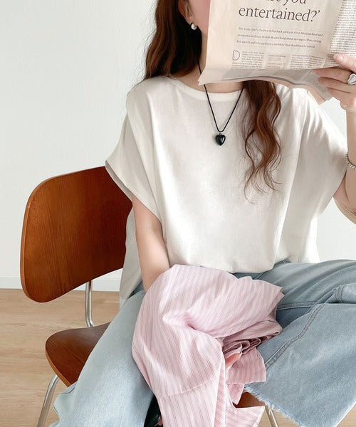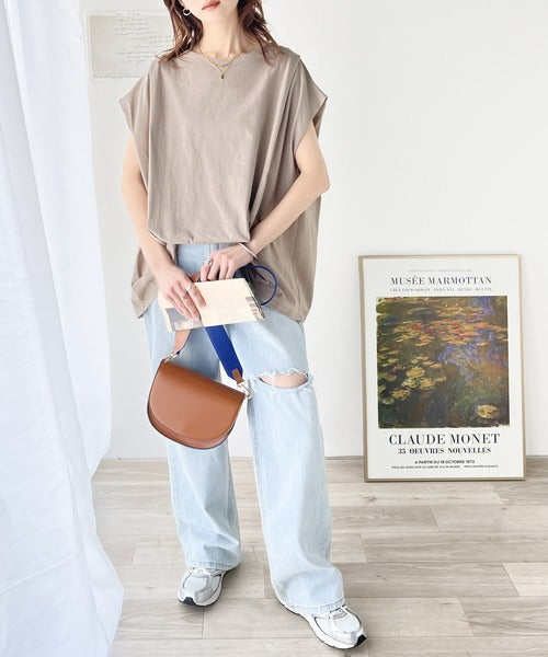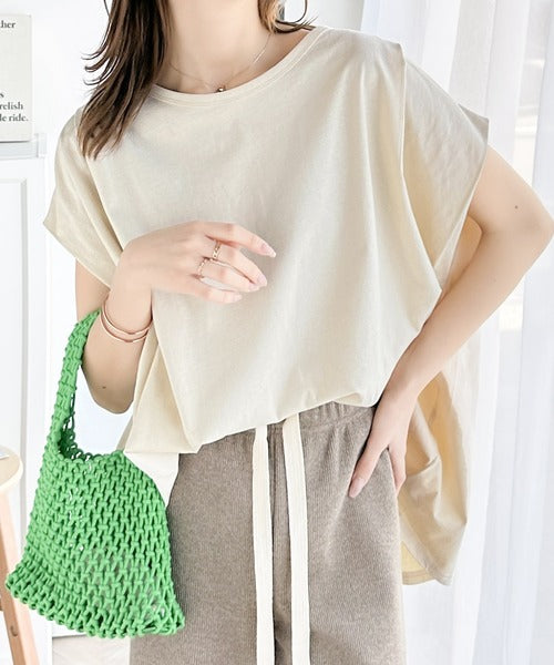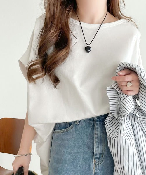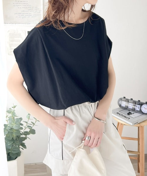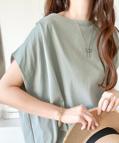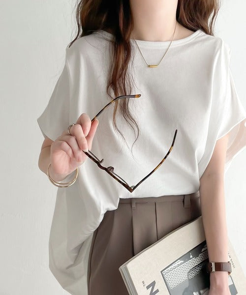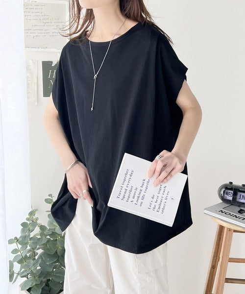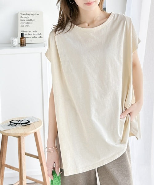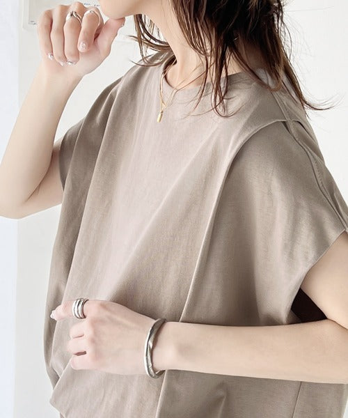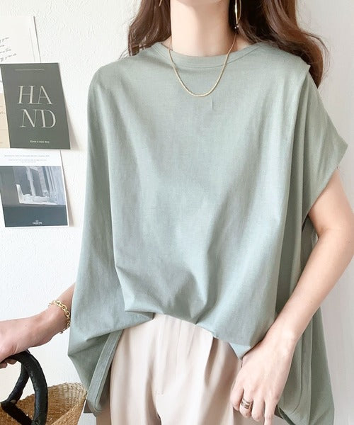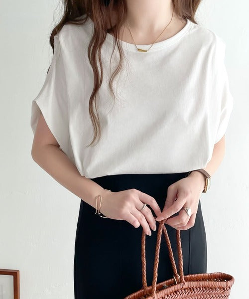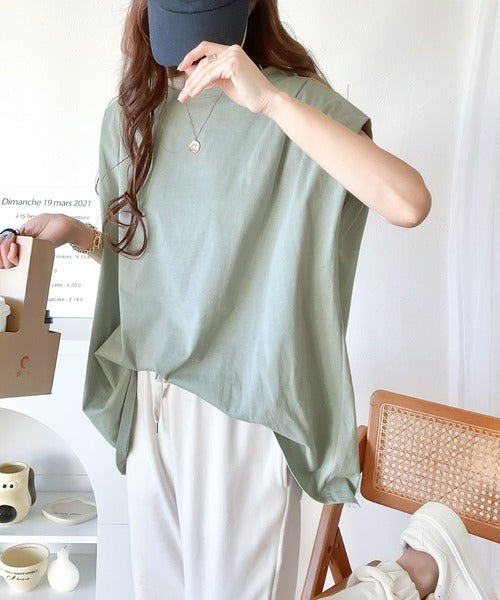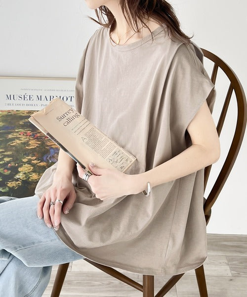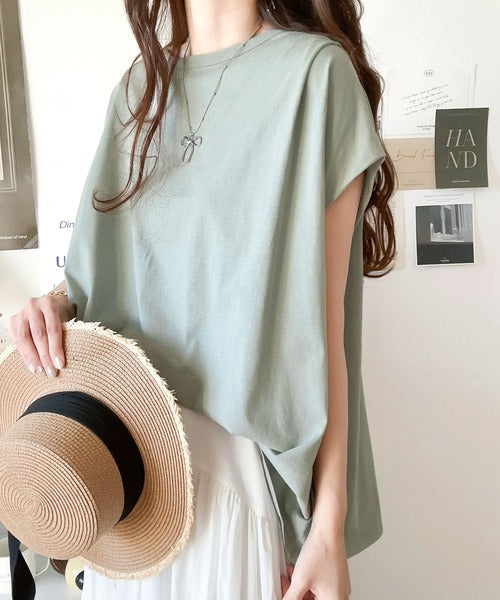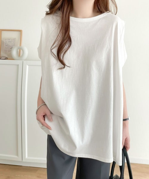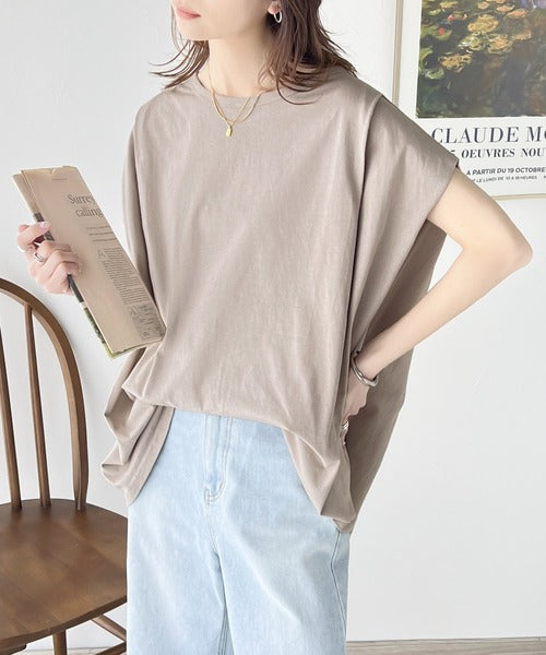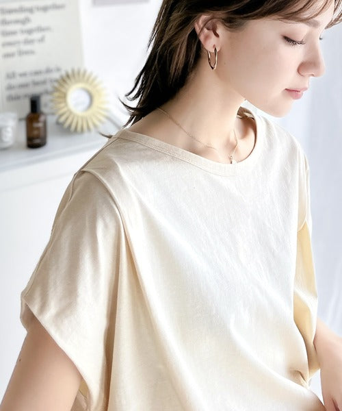 【sustaina+】べーシックながらも1枚でサマになる。オーガニックコットン混 綿100%ショルダータックオーバーサイズトップス ce1050143