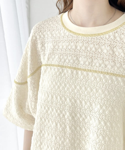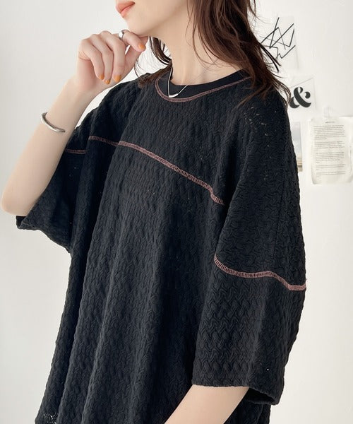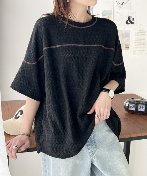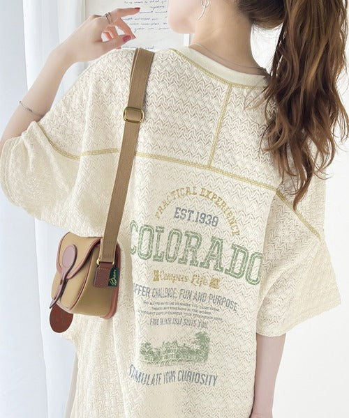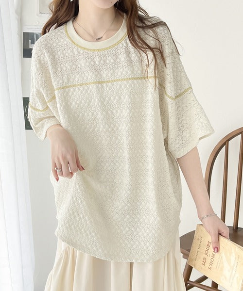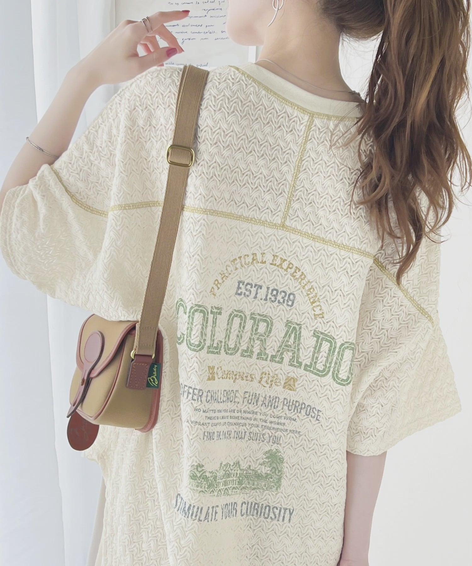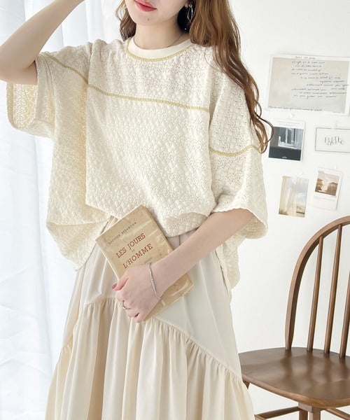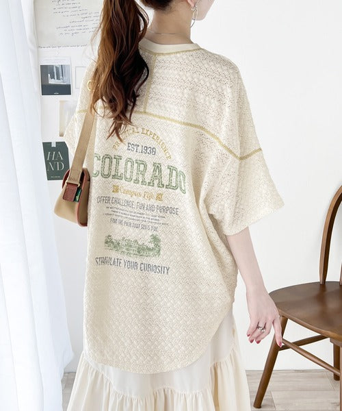 程よい透け感でこなれカジュアル。バックプリント配色レースプルオーバー ce1050147