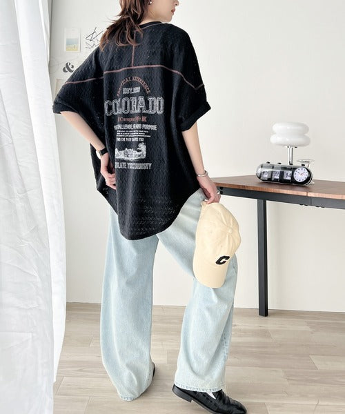 外国の学祭のポスターをイメージした、カジュアルなバックプリントがカワイイ1枚。