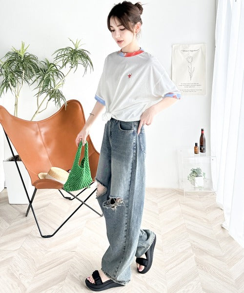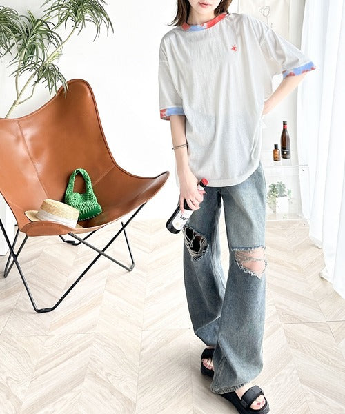 タイダイリブと胸の刺繍がアクセントになり、どんなボトムスと合わせても上級コーデに仕上がります!