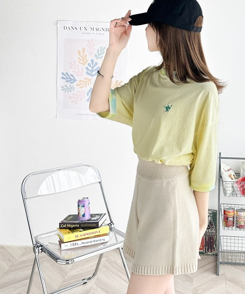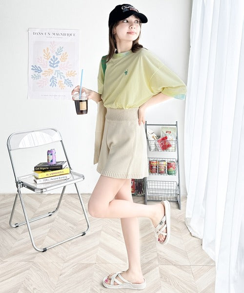 胸にはワンポイント刺繍の夏気分たっぷりな半袖Tee。