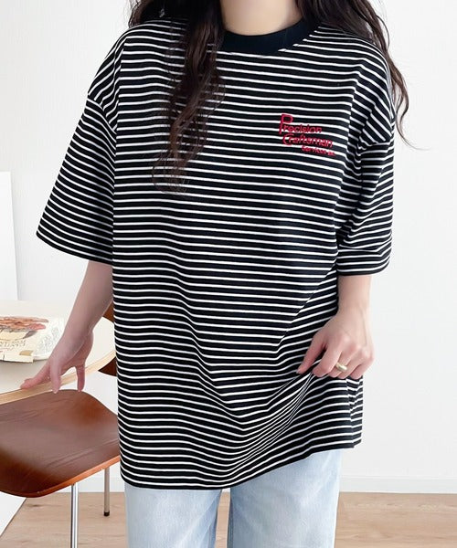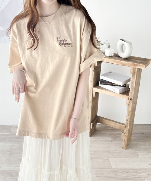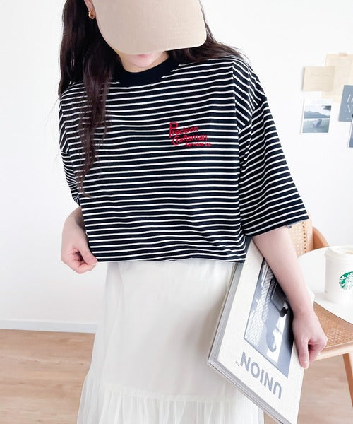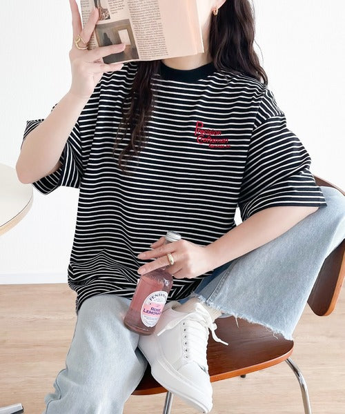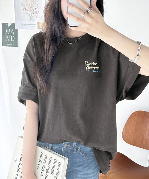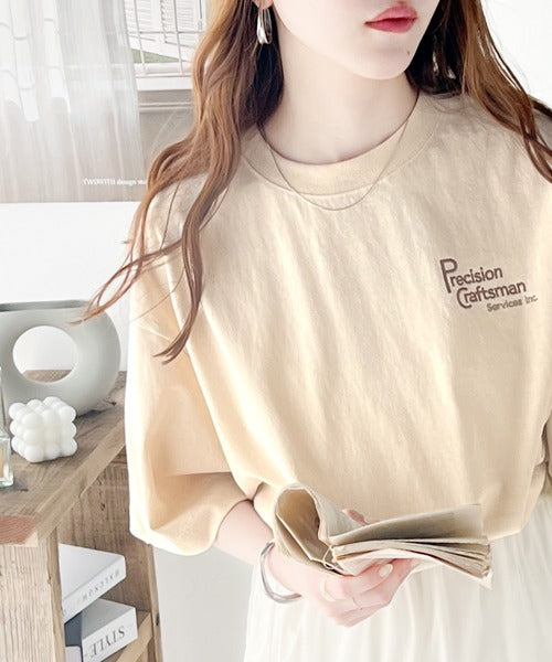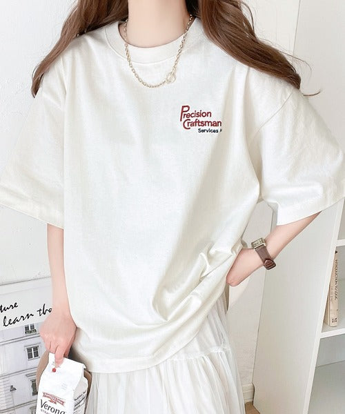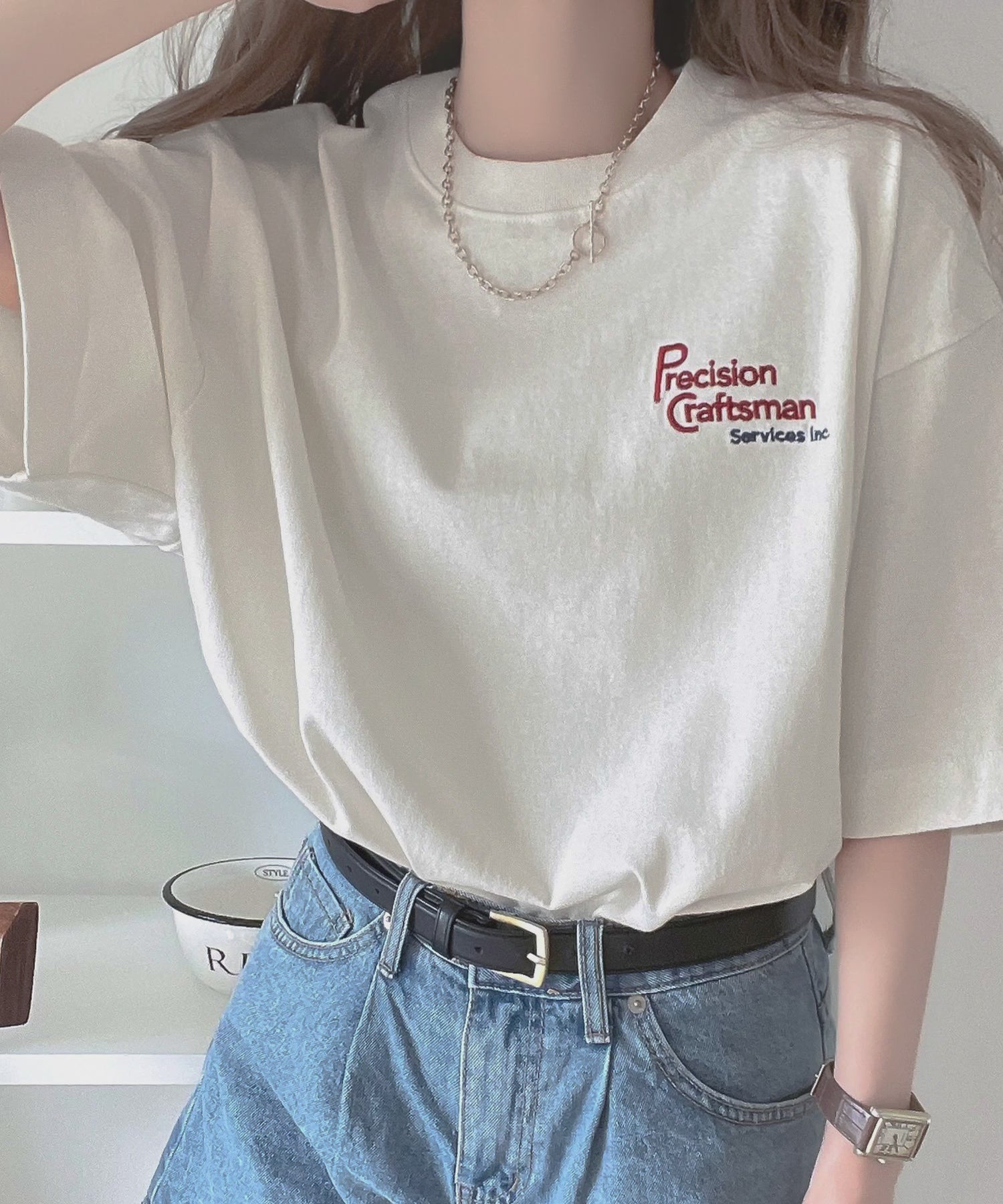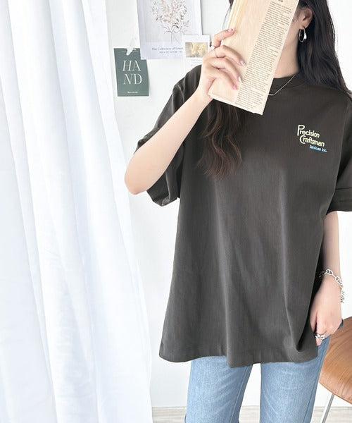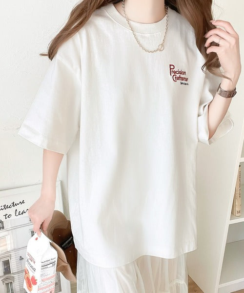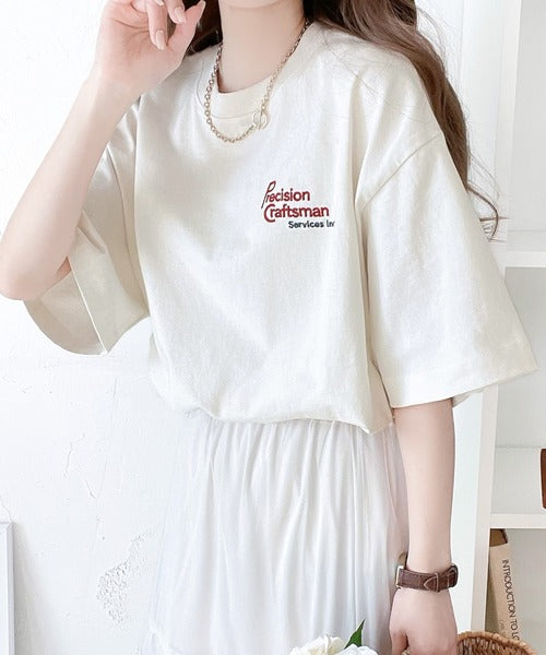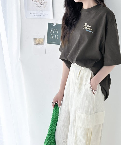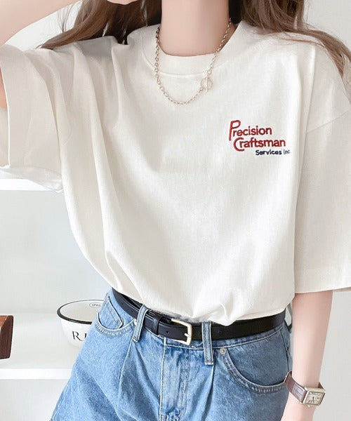 《メンズもお揃いで着れちゃう、ワンポイント刺繍ロゴTシャツ》