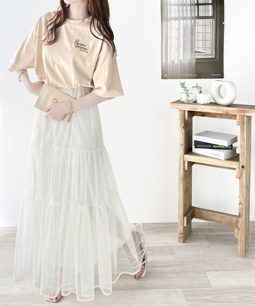 1枚ではもちろん、フリルビスチェやチュールアイテムなどの甘めアイテムと合わせれば