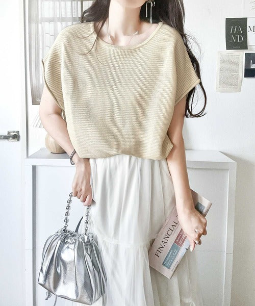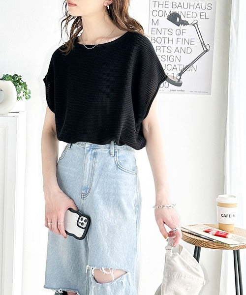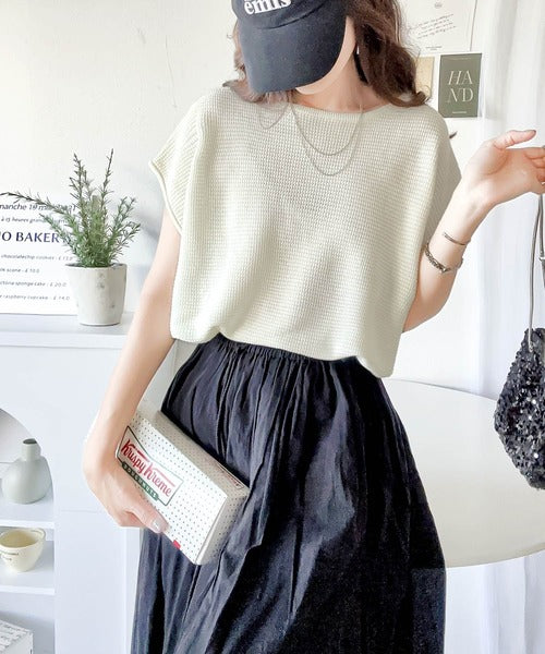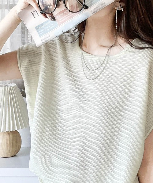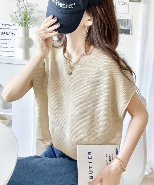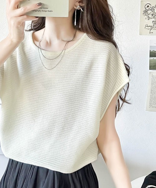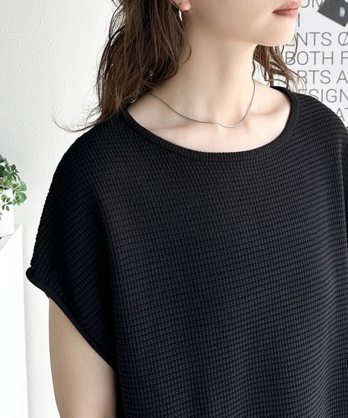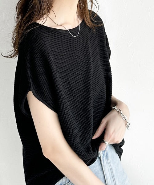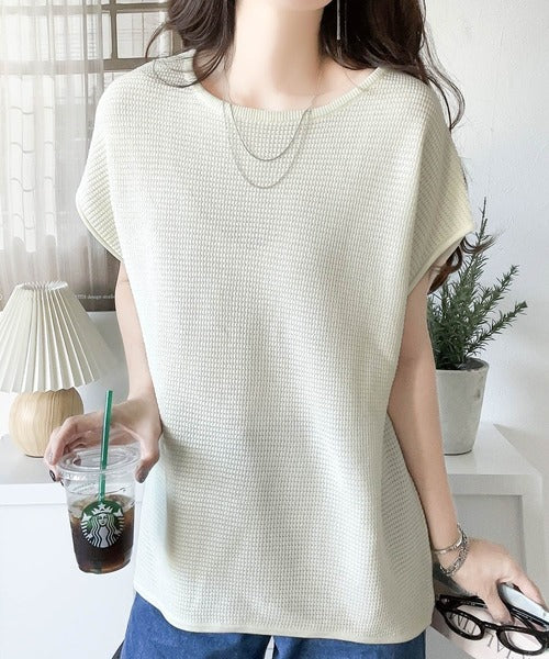 大人の着映えトップス。ワッフル編みフレンチサマーニットプルオーバー ce1050201