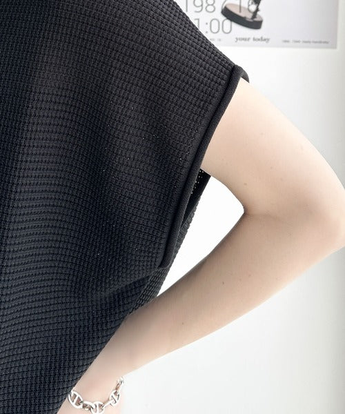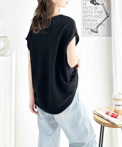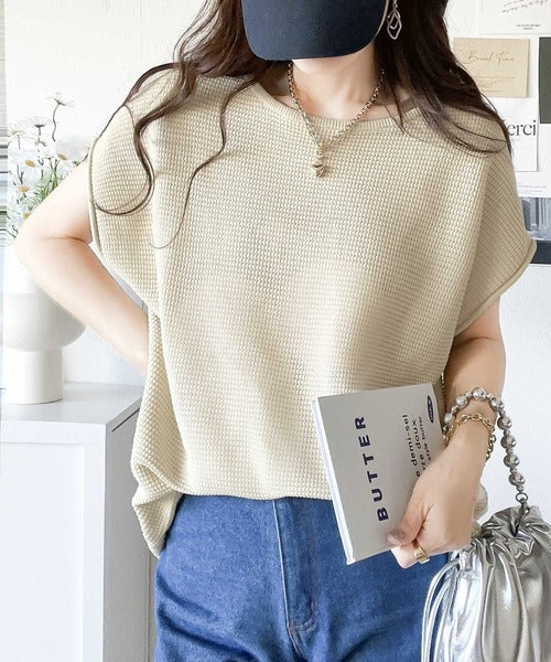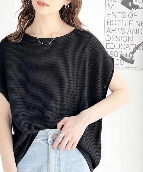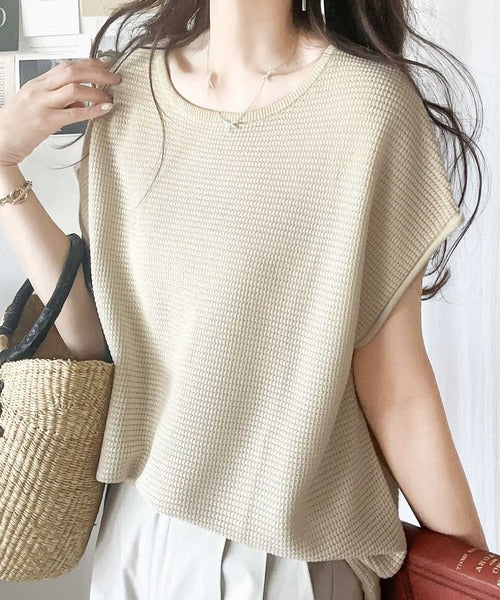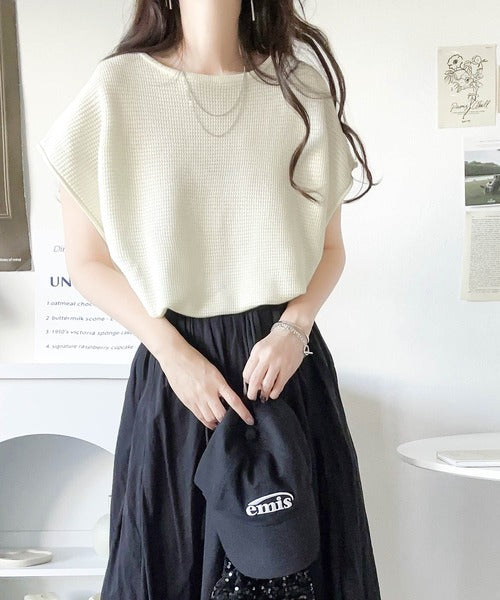 さらっとした素材感が特徴のワッフル編みフレンチトップスです。