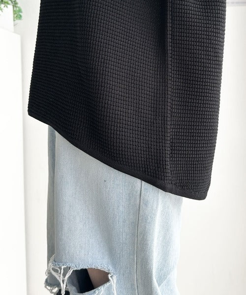 サラッとした素材感とテンションのある編地で真夏まで活躍間違いなしの一枚です!