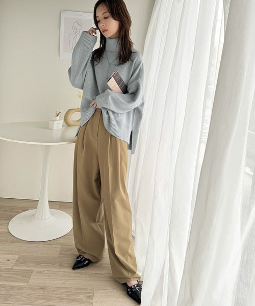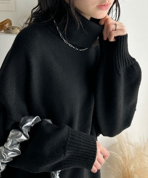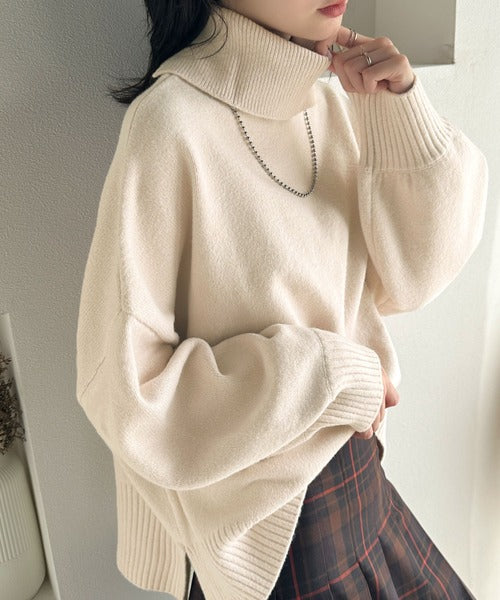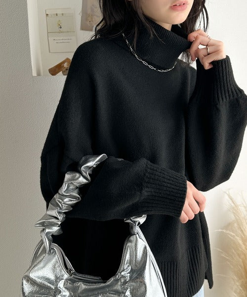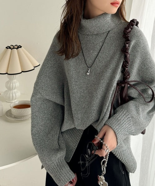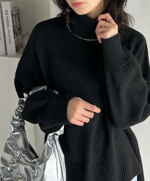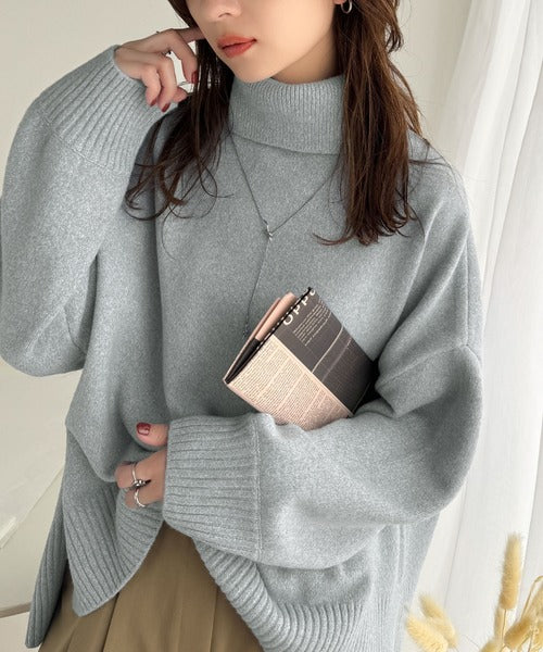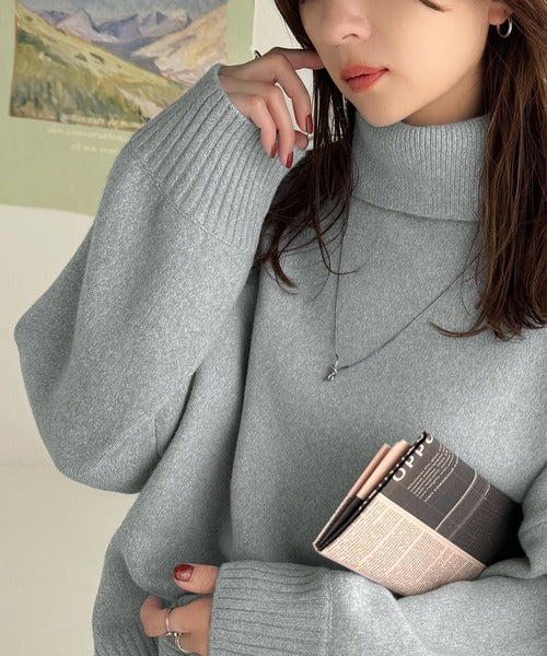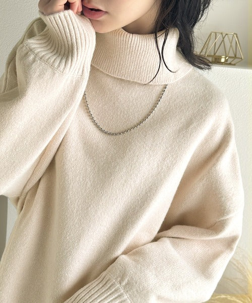 シンプルシックな大人の魅力。天竺編みタートルネック圧縮ニットプルオーバー ce1050259