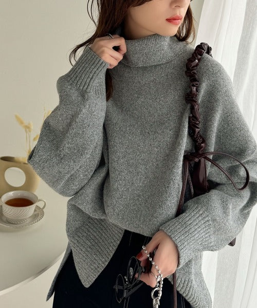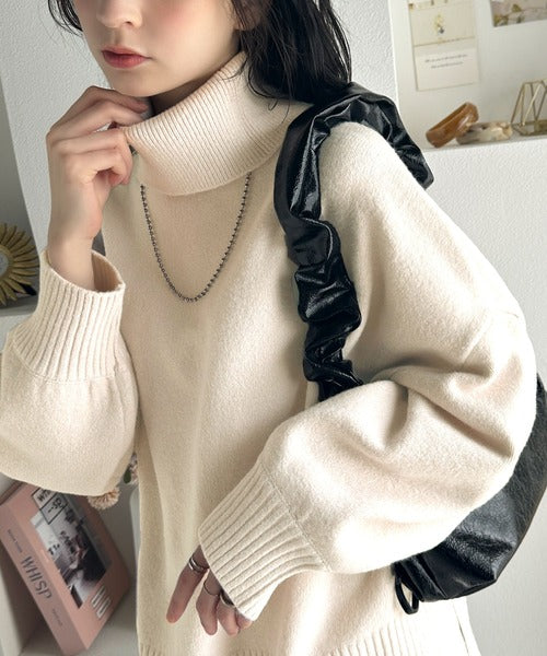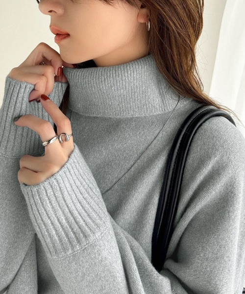 大人の女性にぴったりな、柔らかな素材感が魅力のタートルネックニットです。