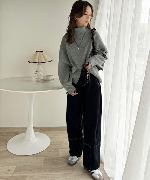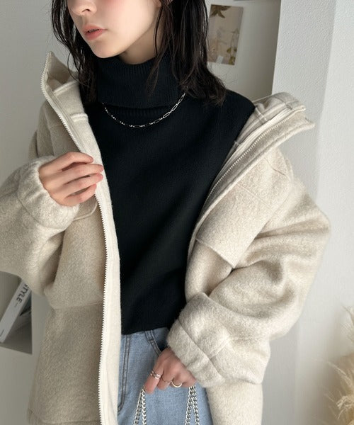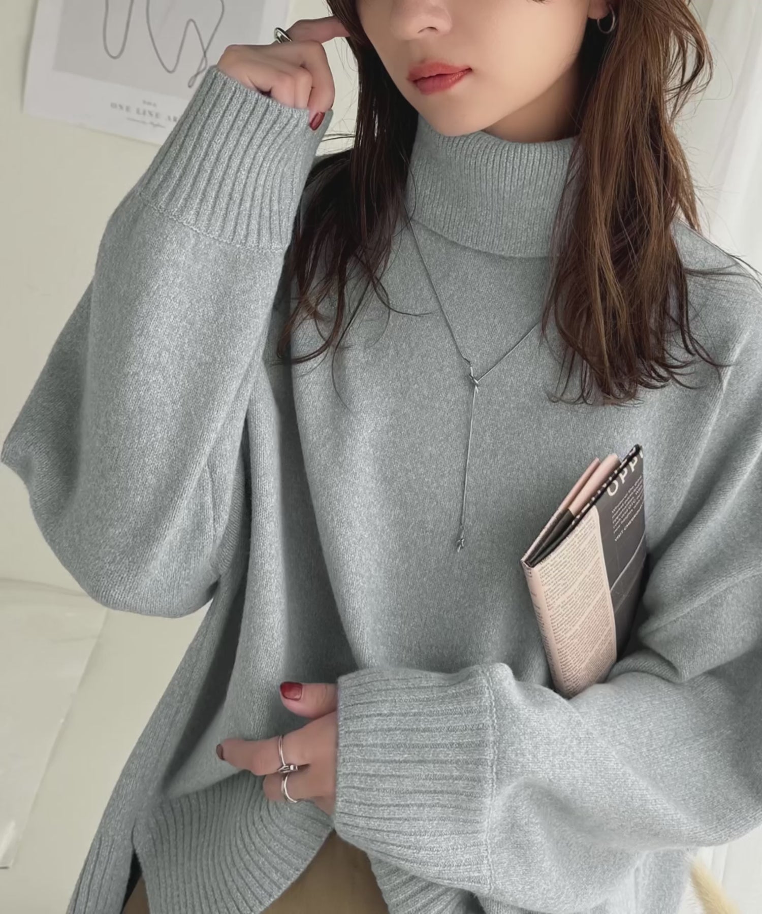 ハイネックが首元をしっかりとあたためてくれるので、寒い秋冬の季節でも安心して着用できます。