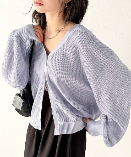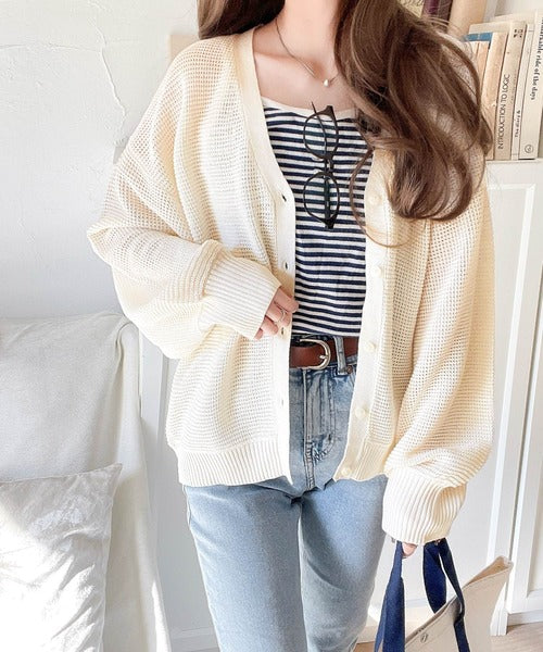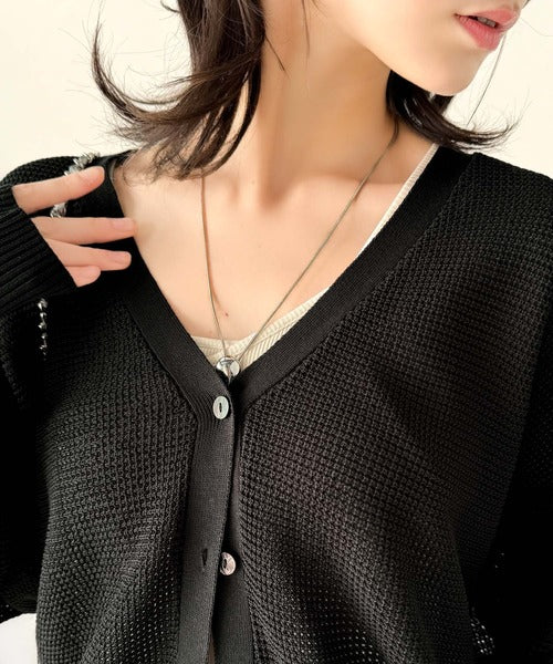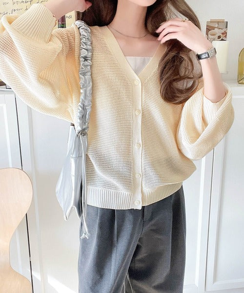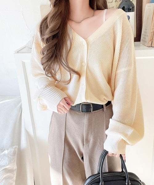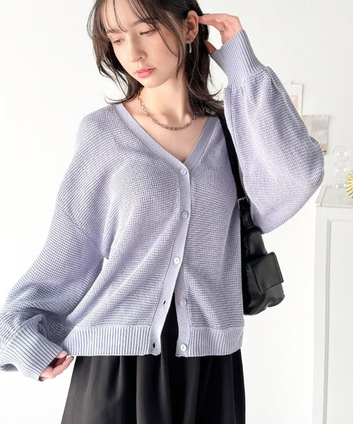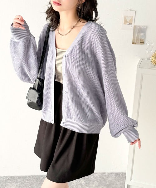 リラクシーで上品。ワッフルニットVネックカーディガン(ドルマンスリーブ) ce1050292