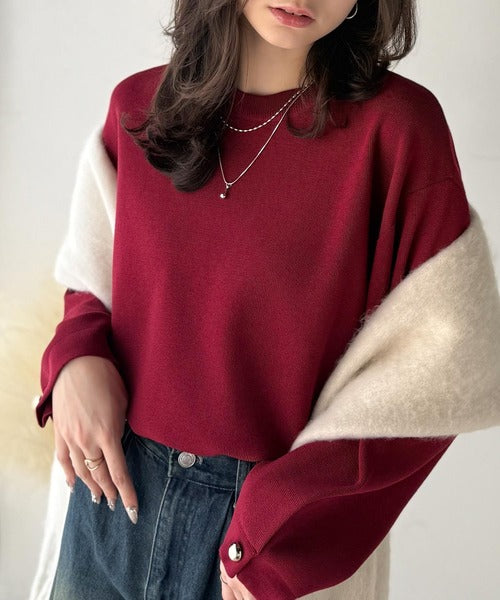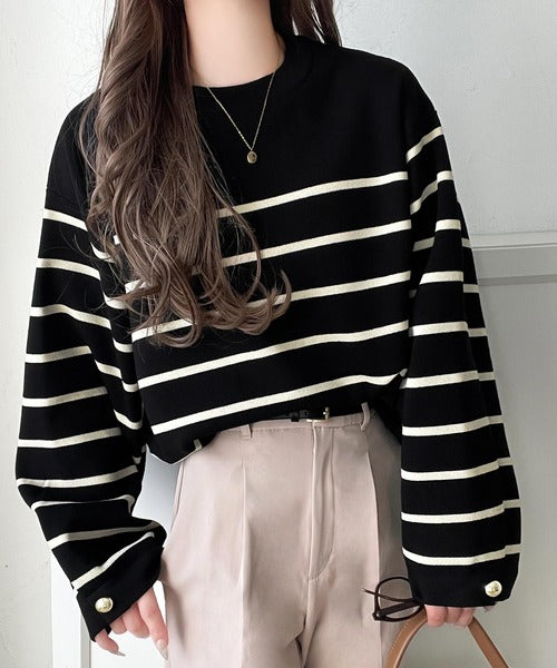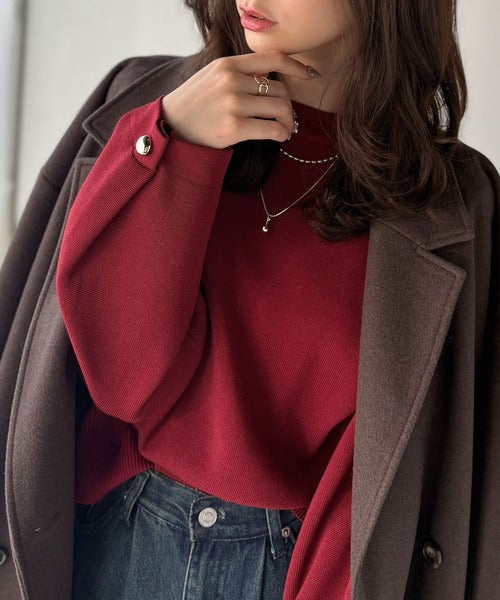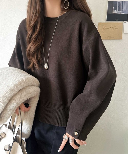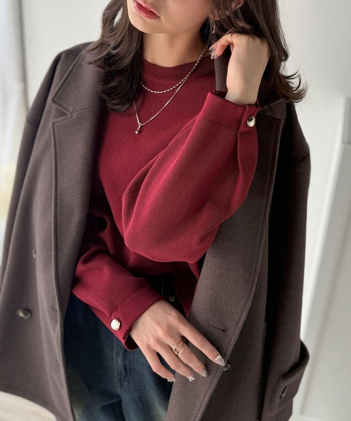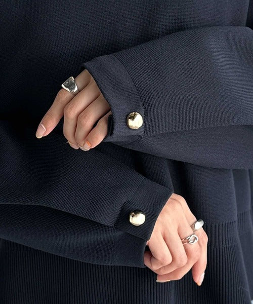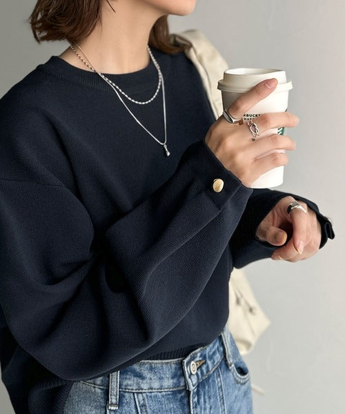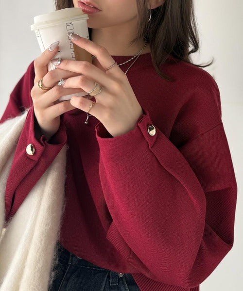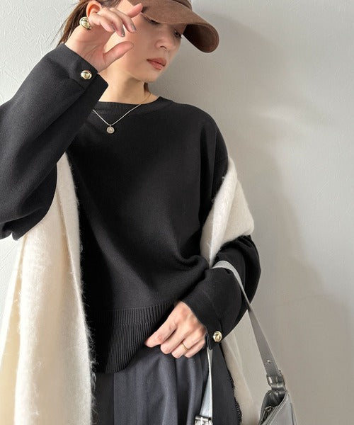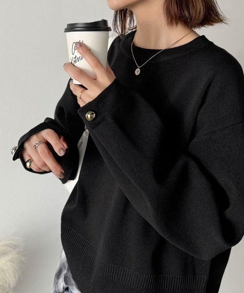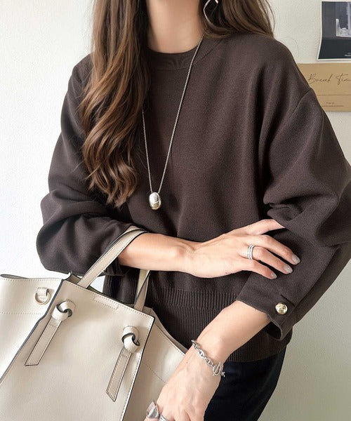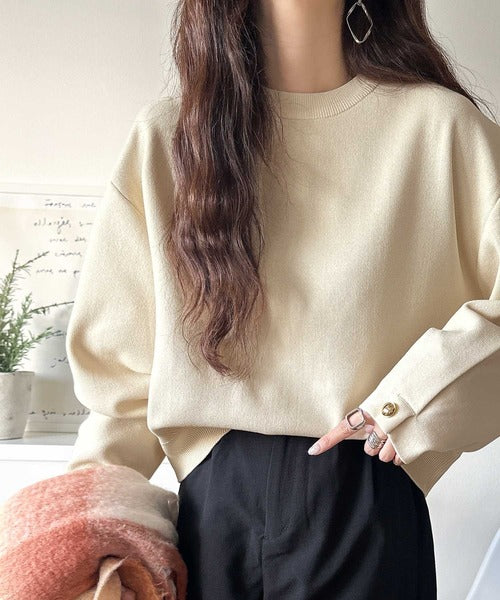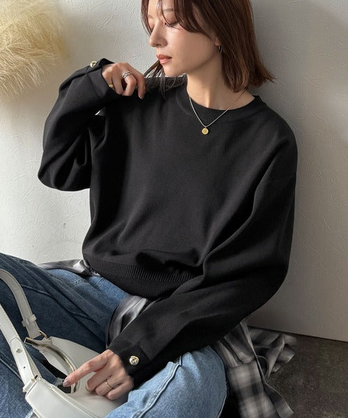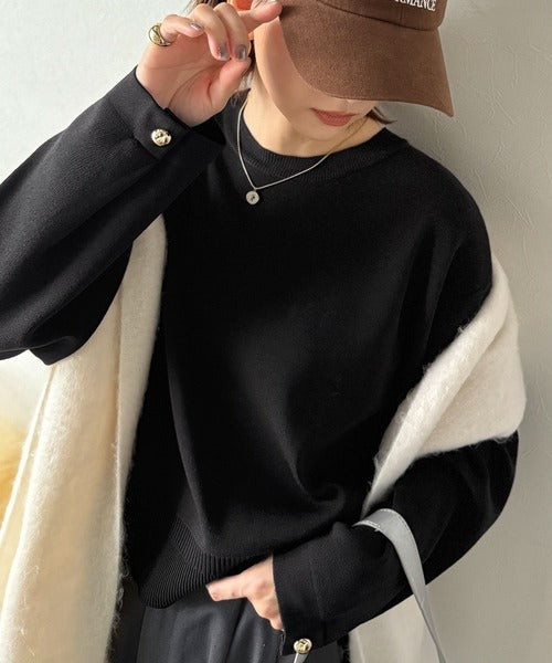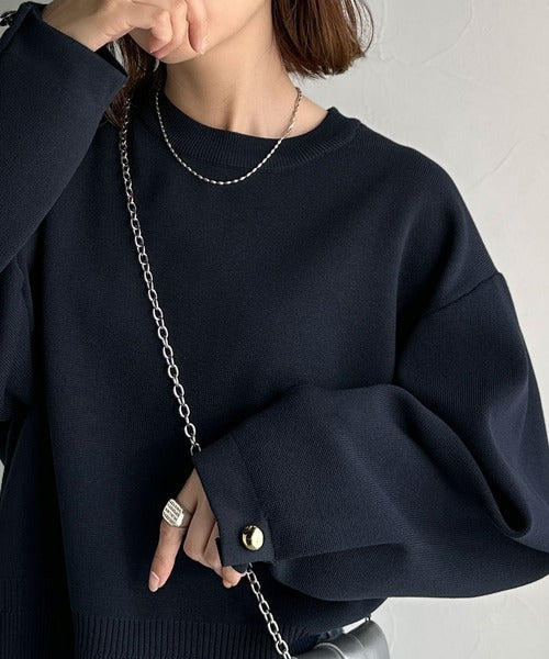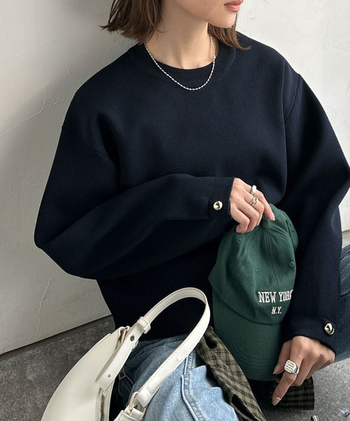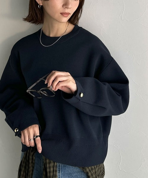 ゆったりなのに上品でキチンと見え。ミラノリブ袖先ゴールドボタンプルオーバー ce1050331