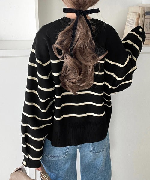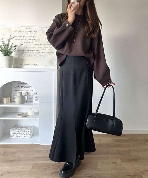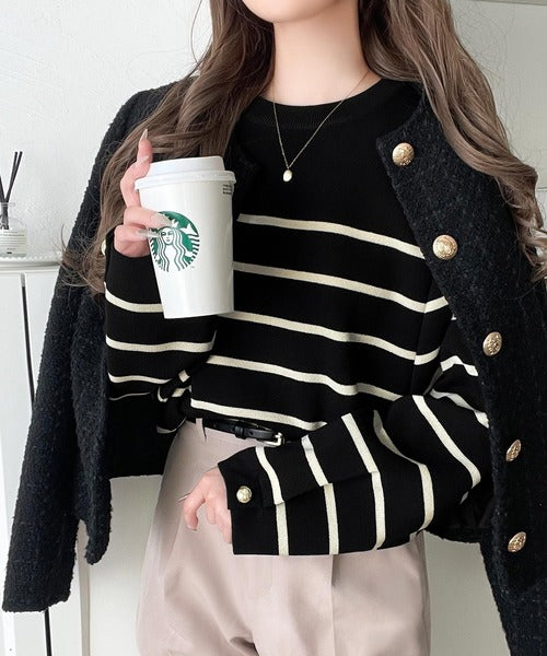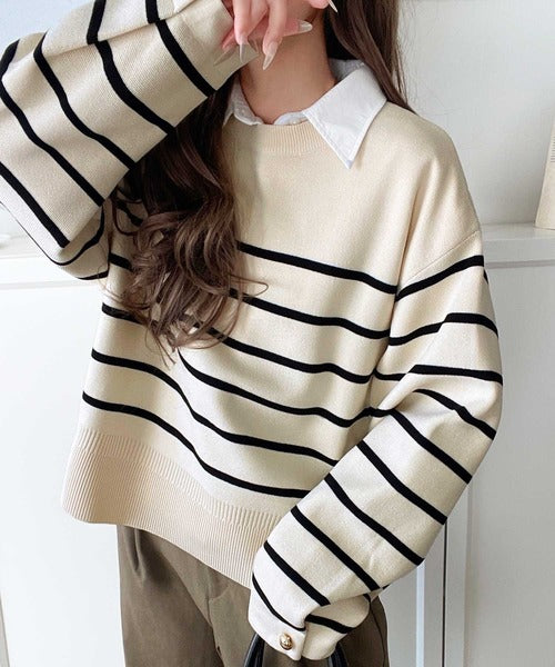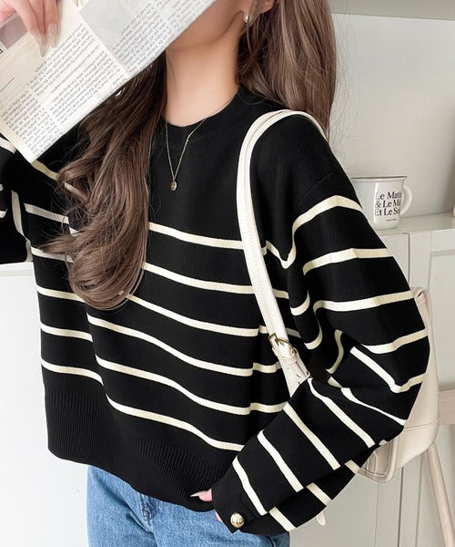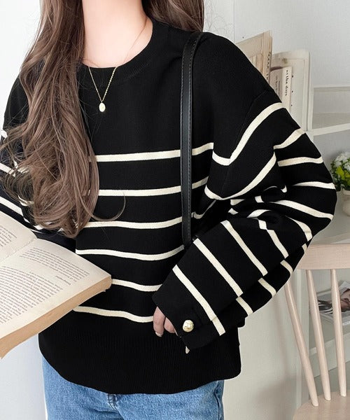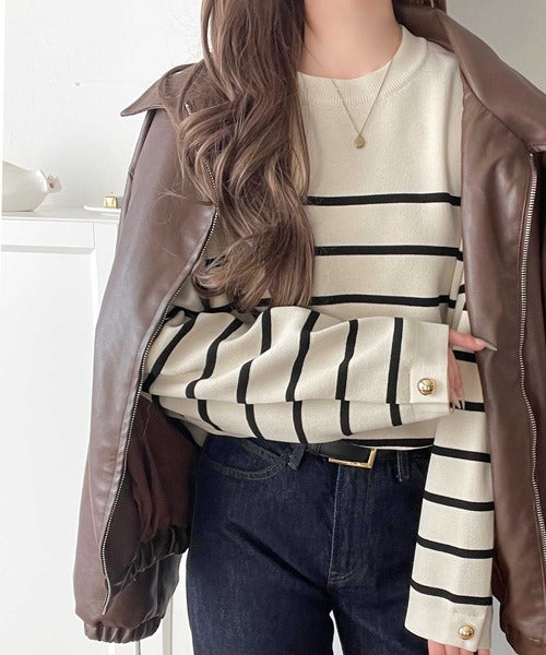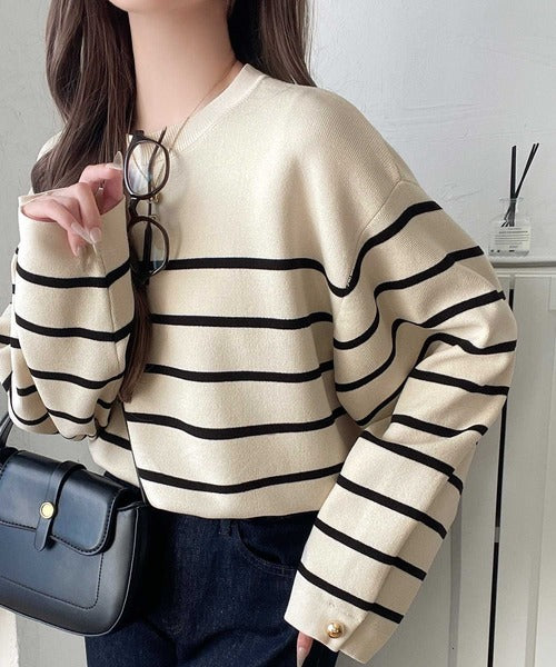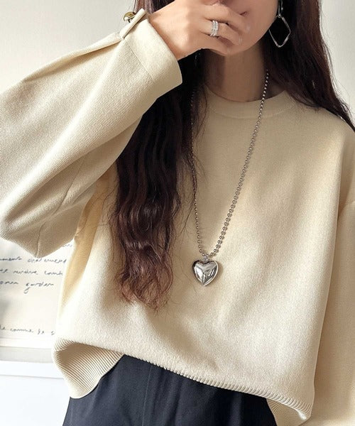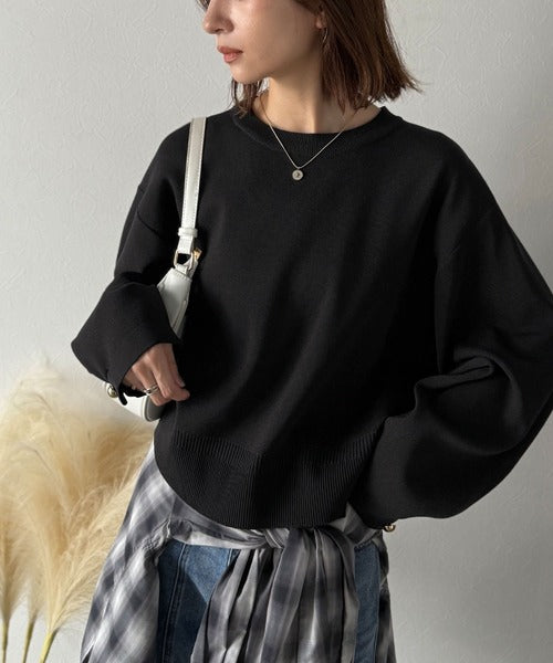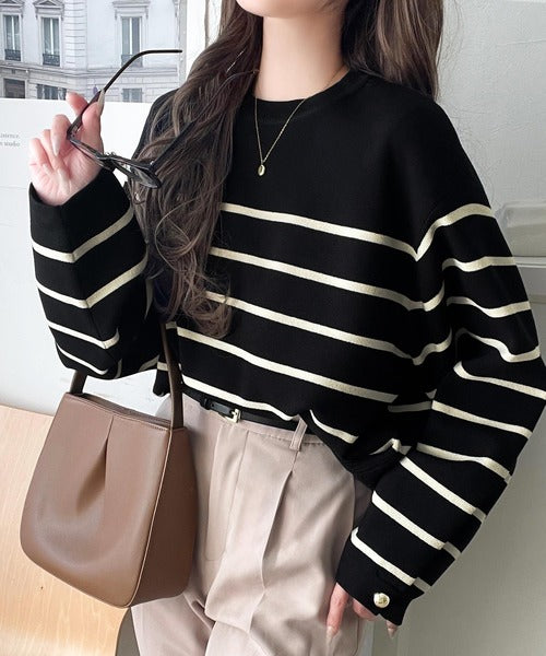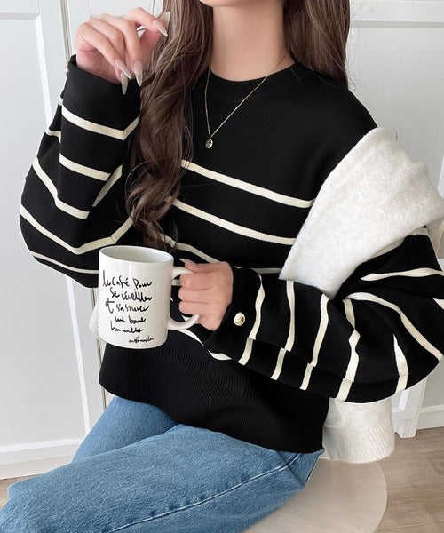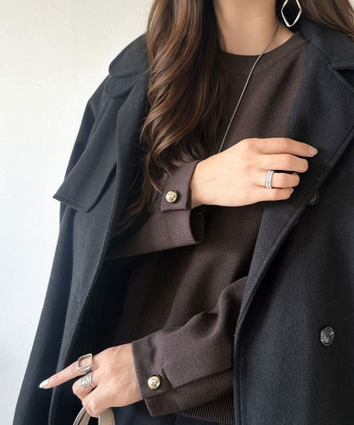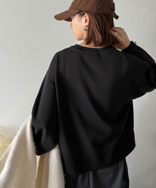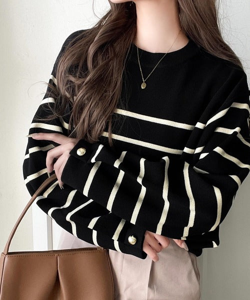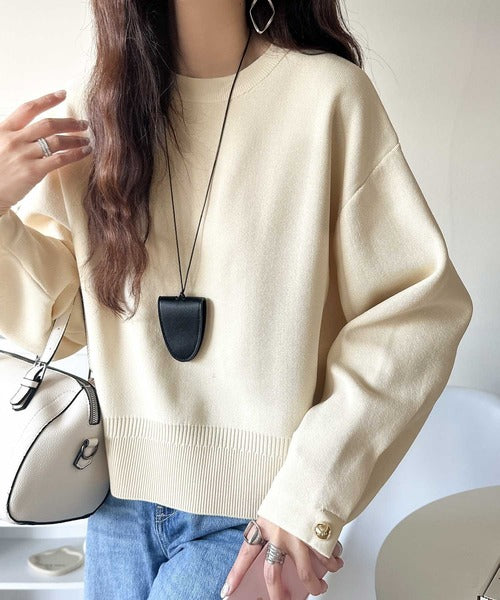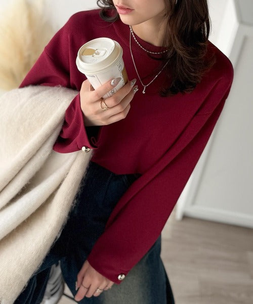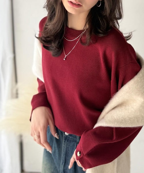 ゆったりなのに上品でキチンと見え。ミラノリブ袖先ゴールドボタンプルオーバー ce1050331