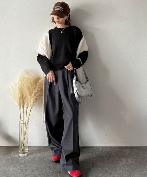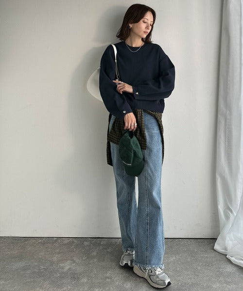 上品できれいめな雰囲気もありつつ、カジュアルにもオフィスにも合わせれる万能ニットが登場。