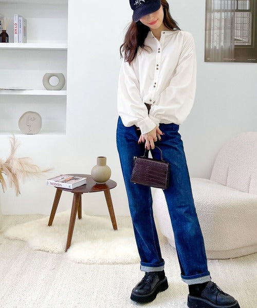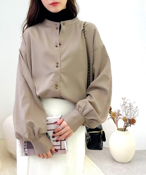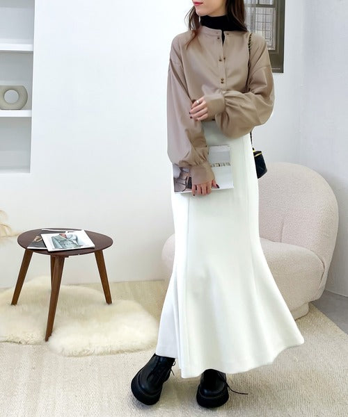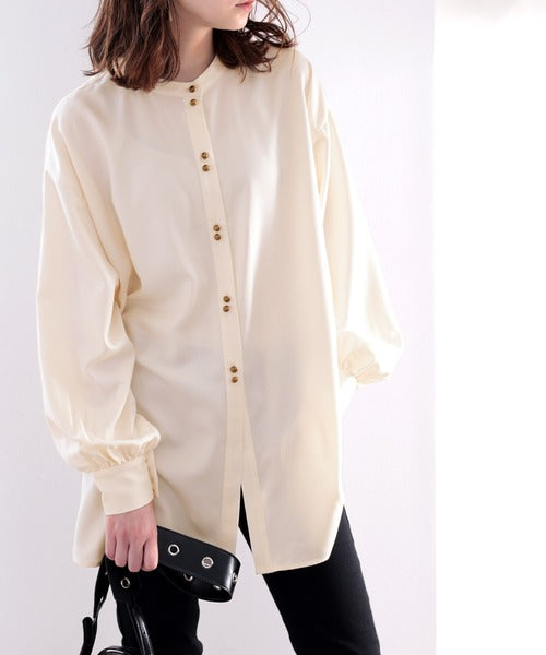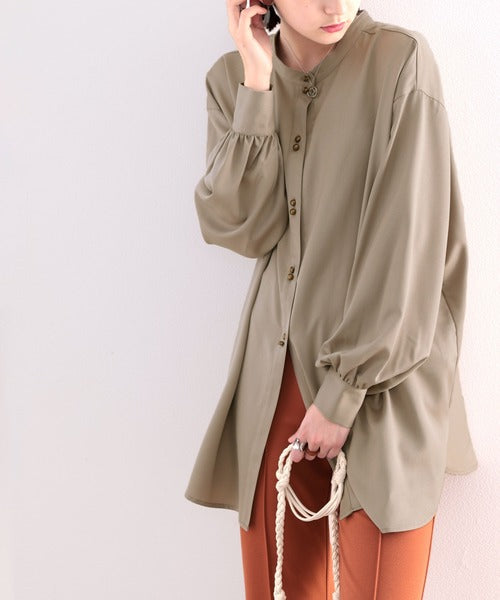 襟元はバンドカラーで、首元もすっきり見せてくれます。