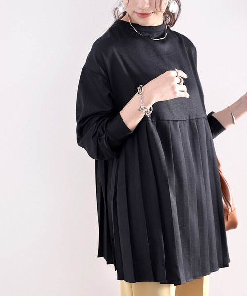 胸下からのプリーツ切替は、こなれ感を出しつつ
