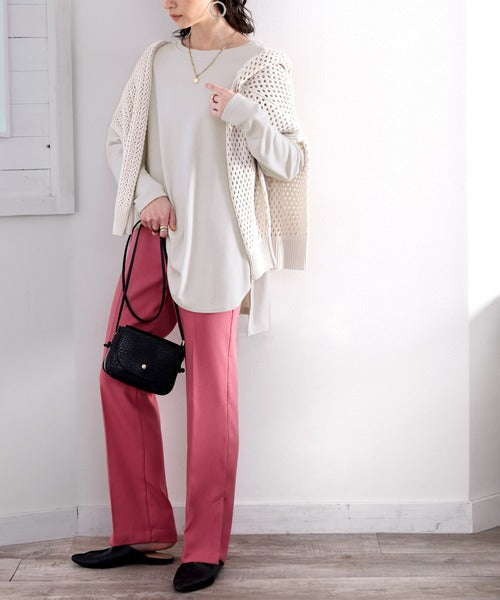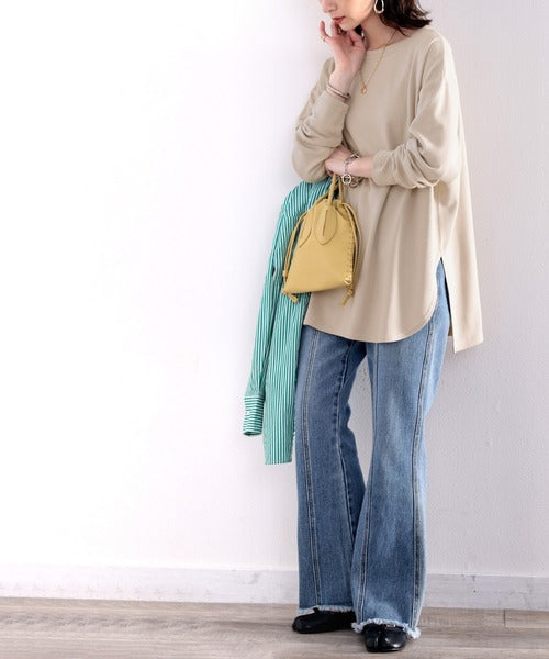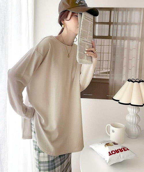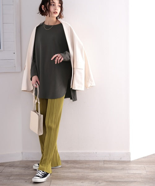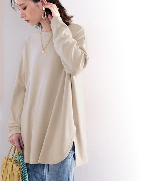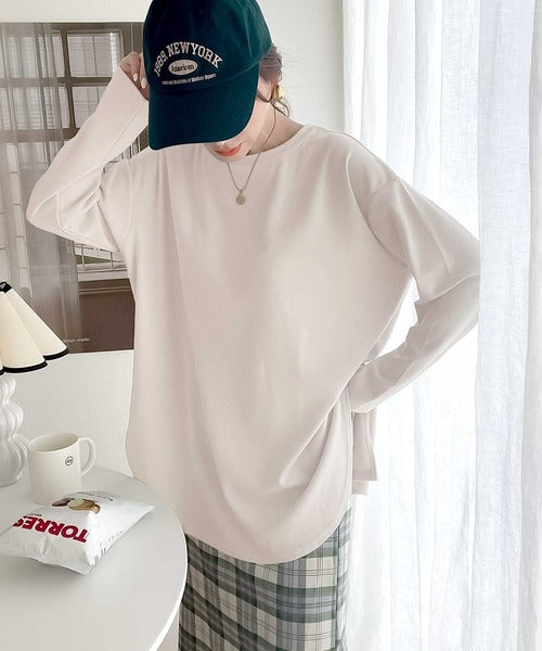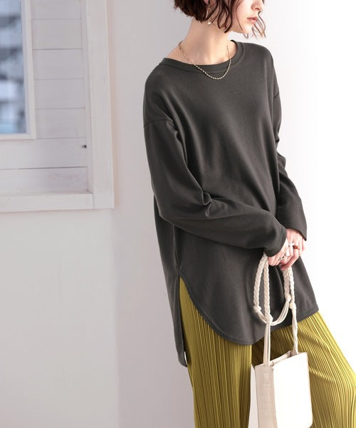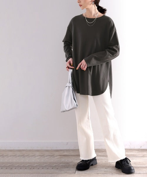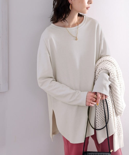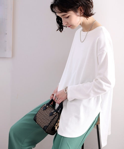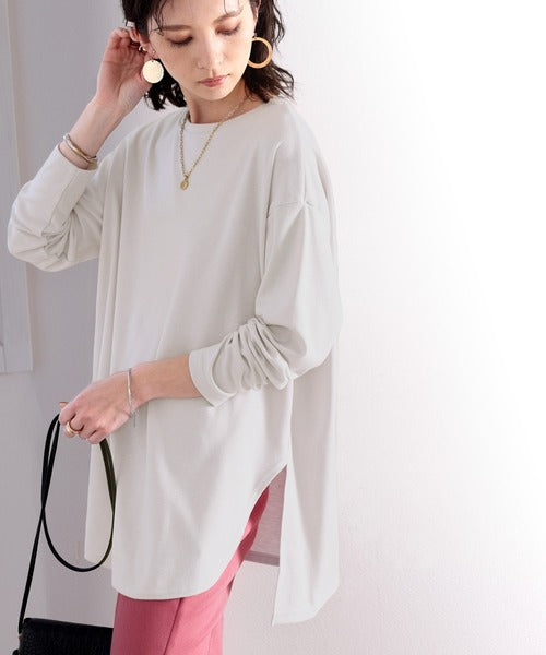 大人シンプルの決定版。柔らかサイドスリットロングTee ce1060011