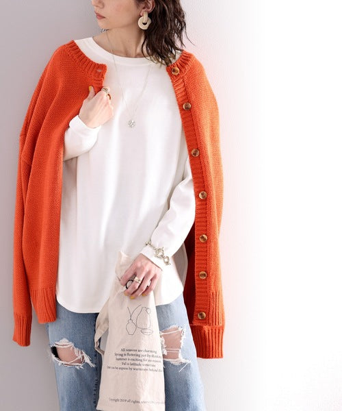 ざっくりニットカーディガンを羽織ったり、タックインしてジャケットを合わせてオンコーデもOK!