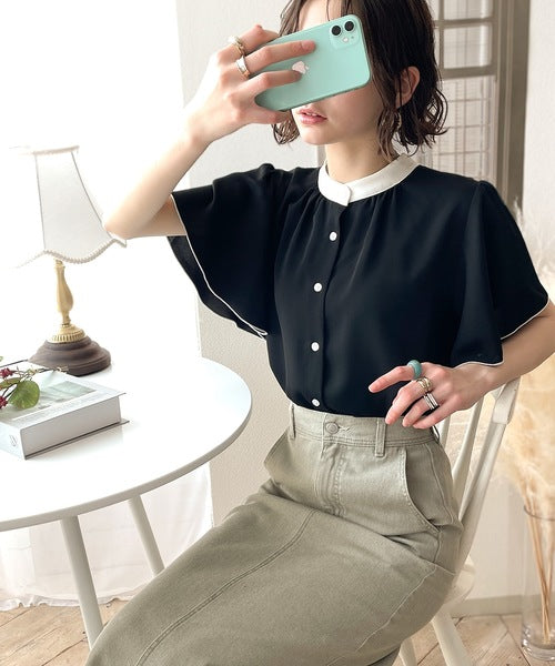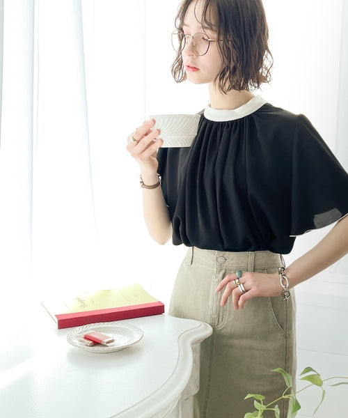 大人レディ魅せ。バイカラー2wayフレア袖ブラウス ce1060013