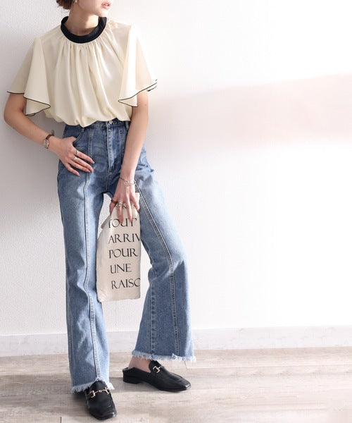 2wayで楽しむ、大人のフレア袖ブラウス。