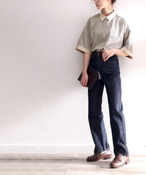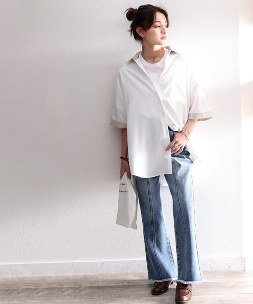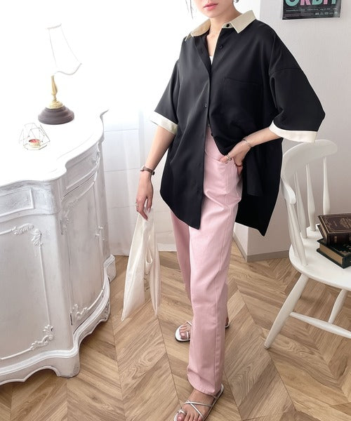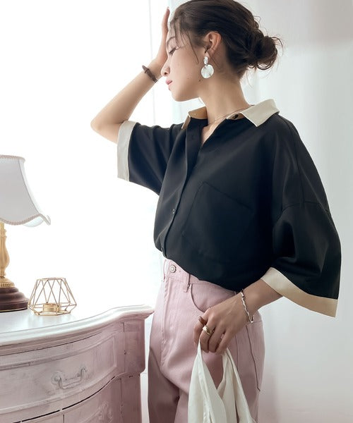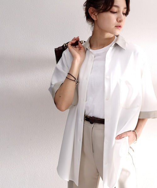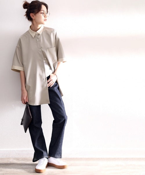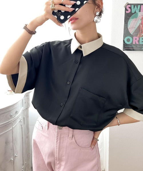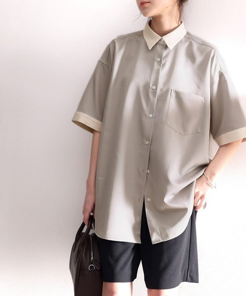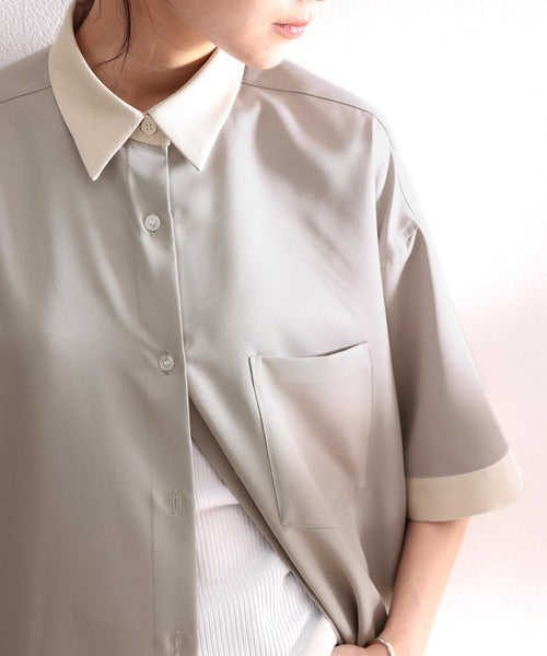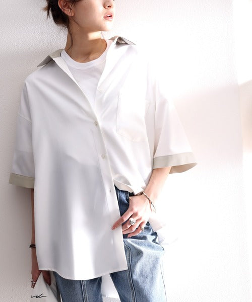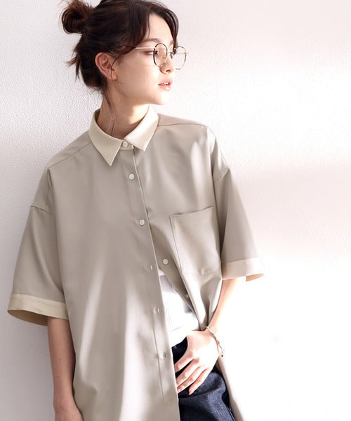 メンズっぽに”きゅん”。バイカラー半袖オーバーシャツ ce1060026