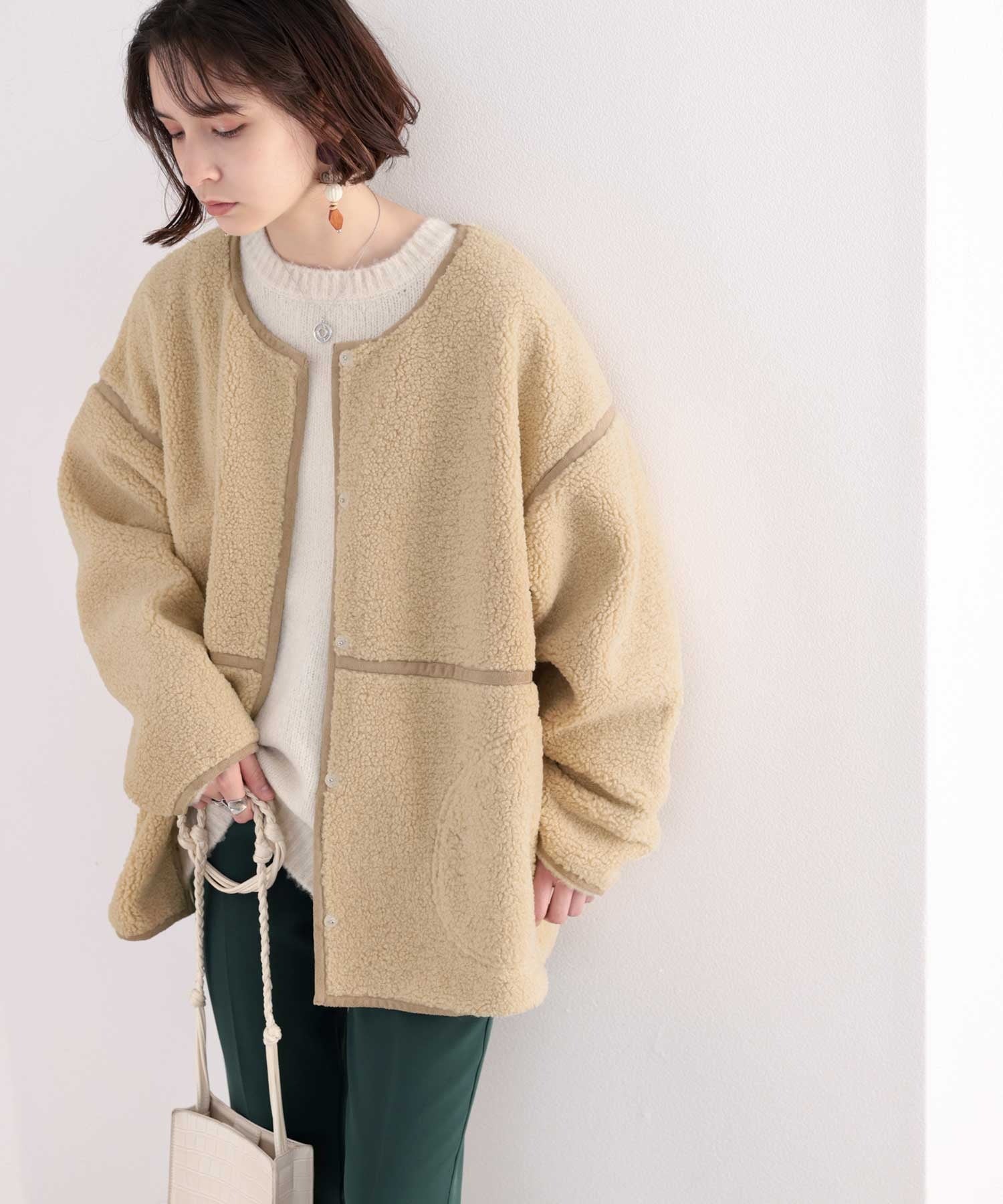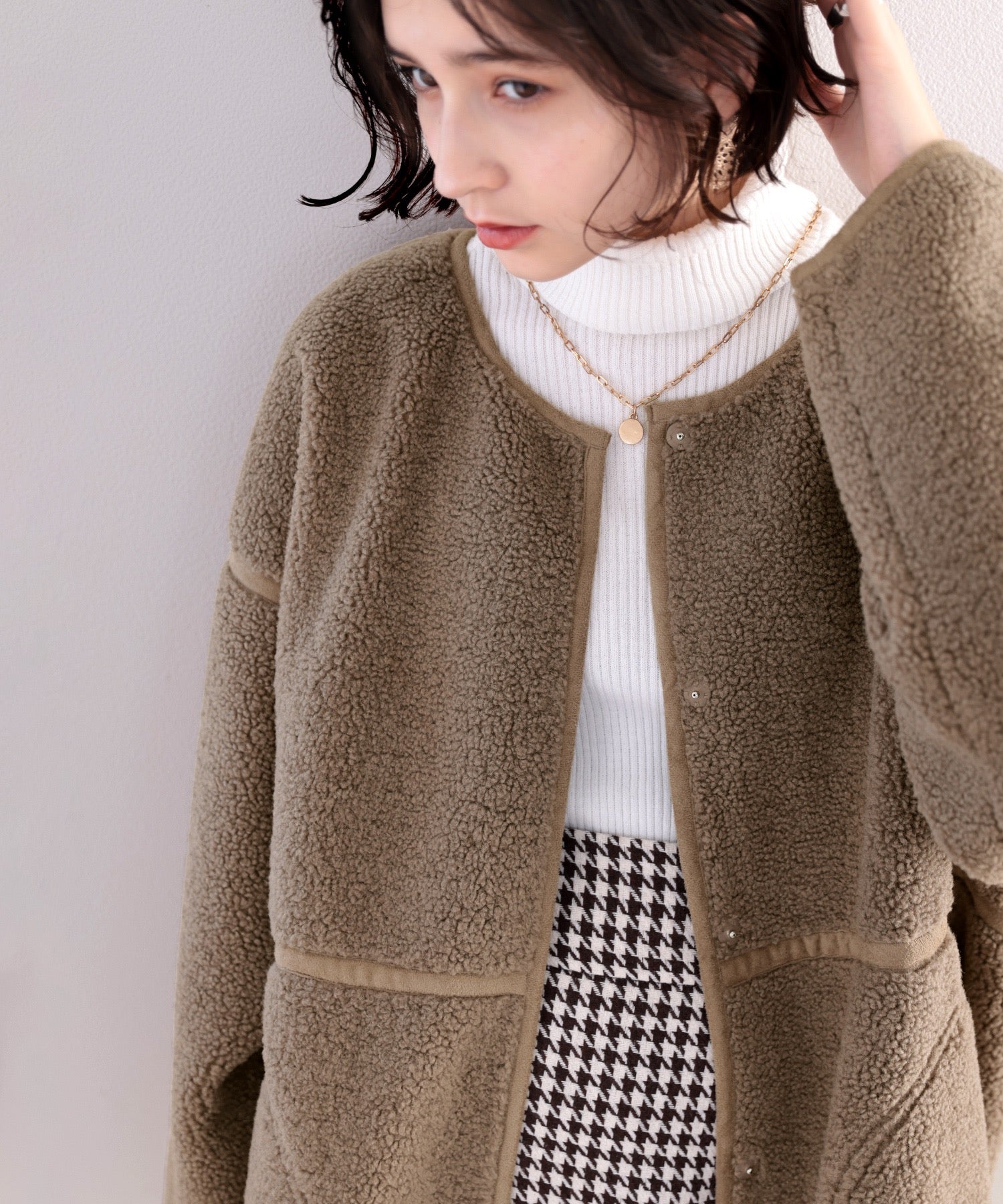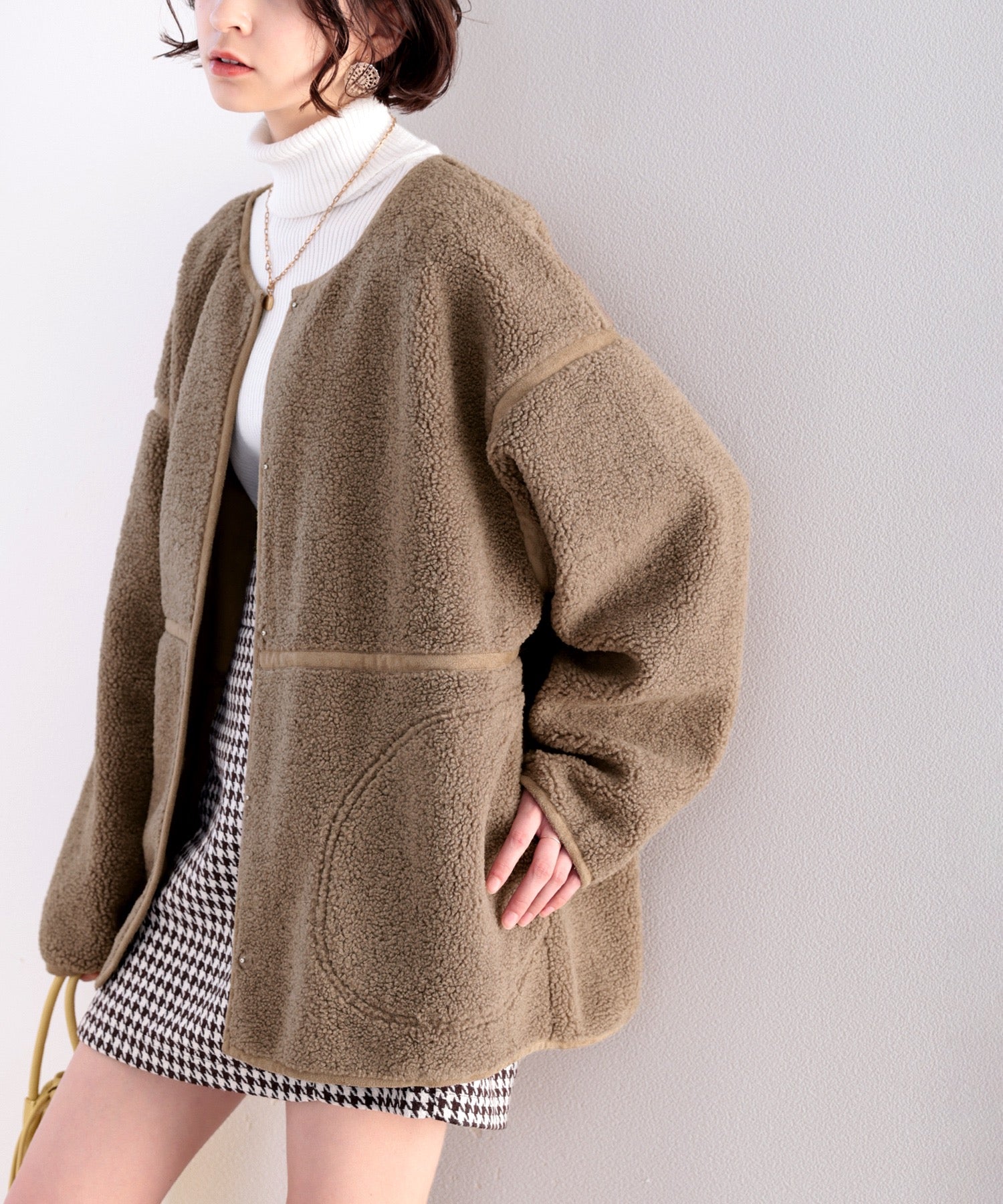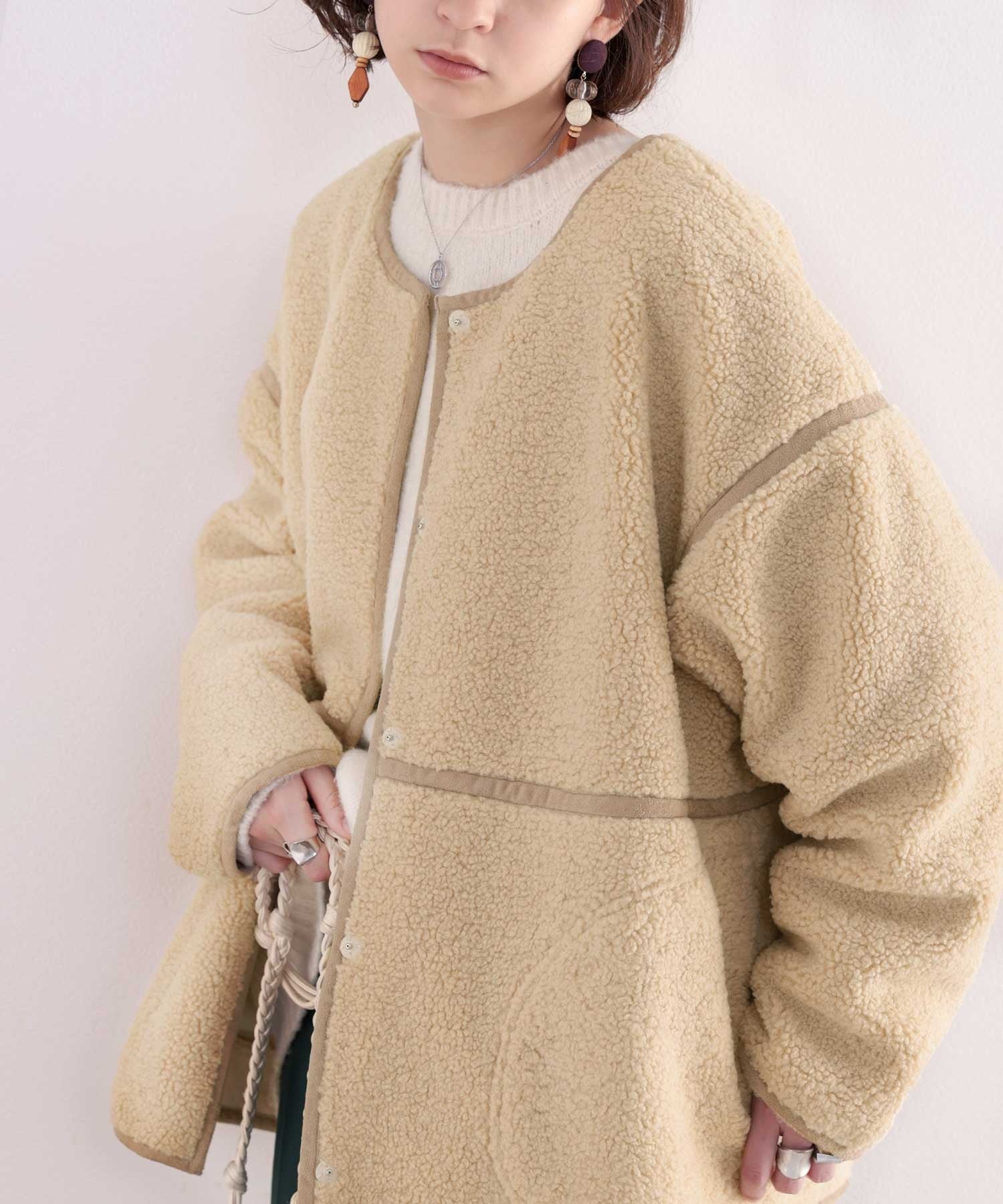 圧縮ボア×フェイクスエード。上品見えパイピングボアコート ce1060110