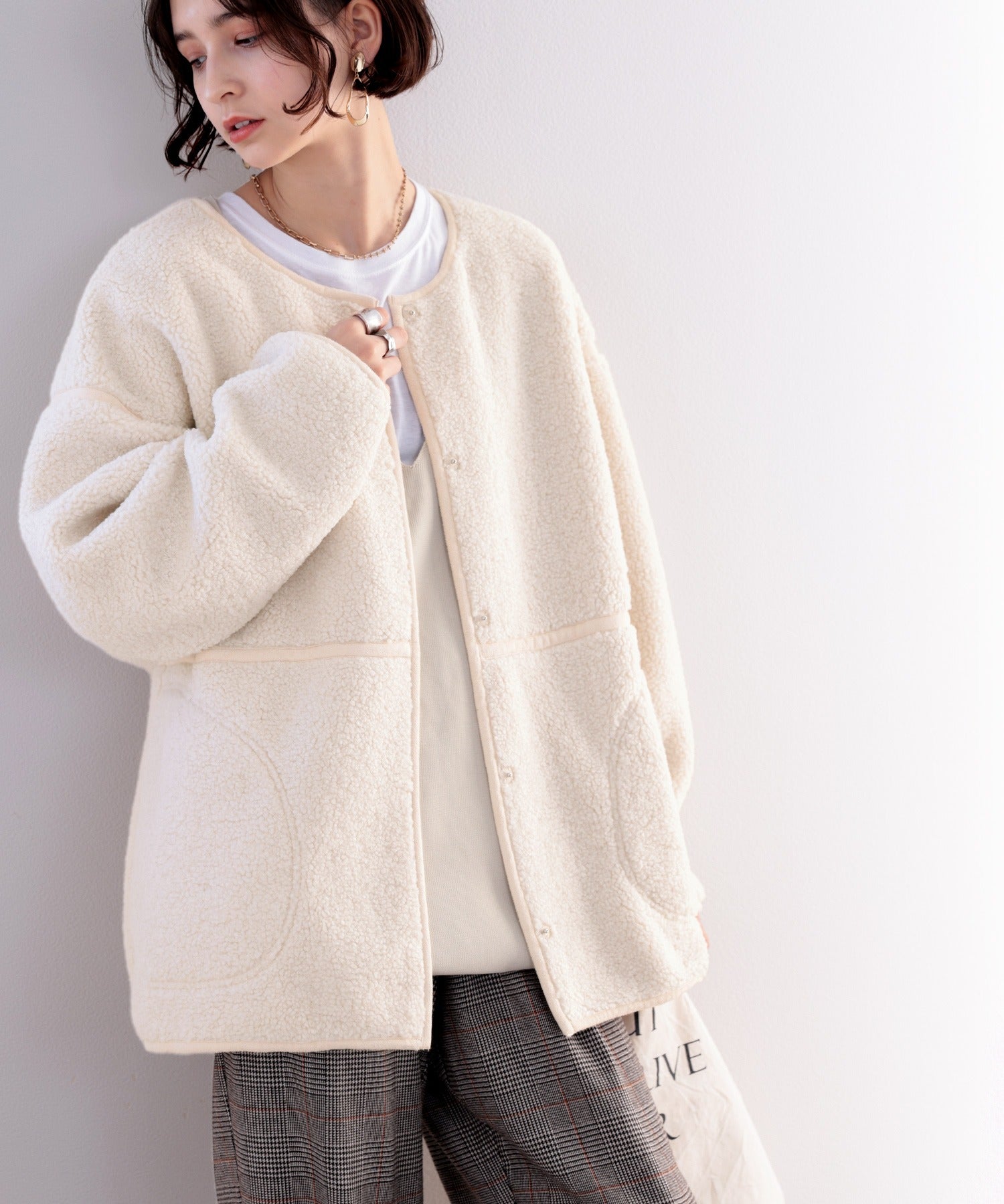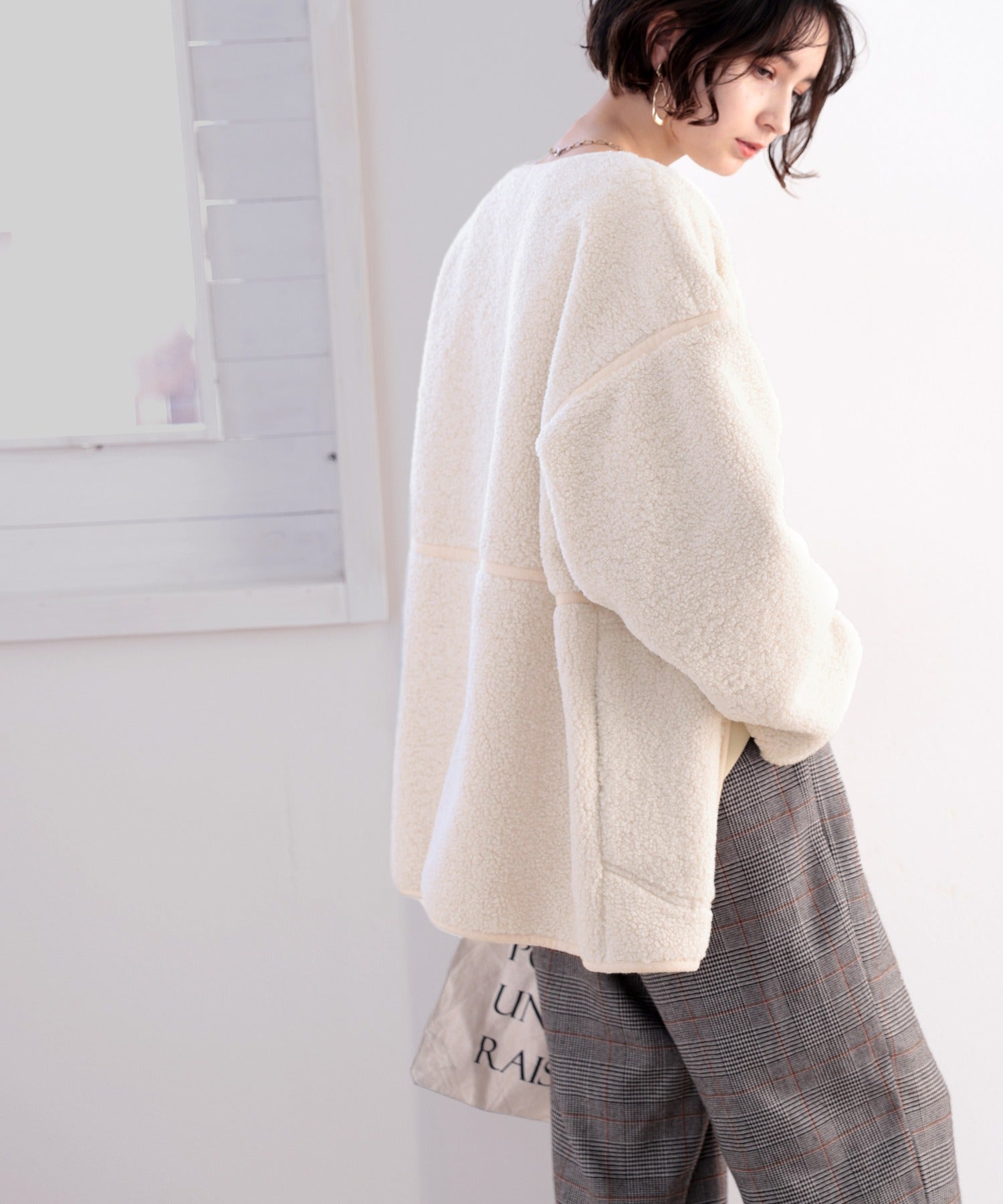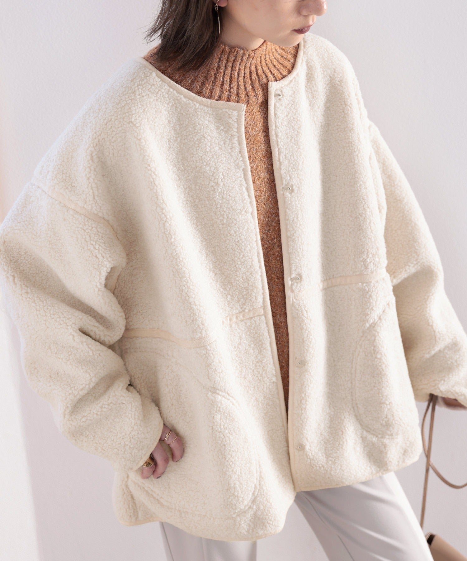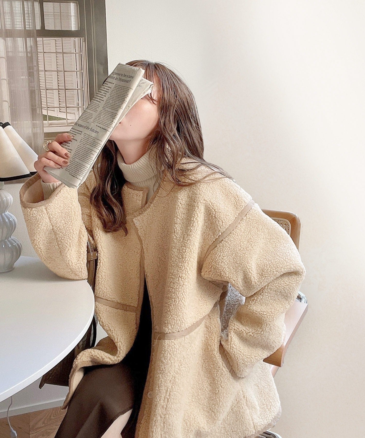 圧縮ボア×フェイクスエード。上品見えパイピングボアコート ce1060110