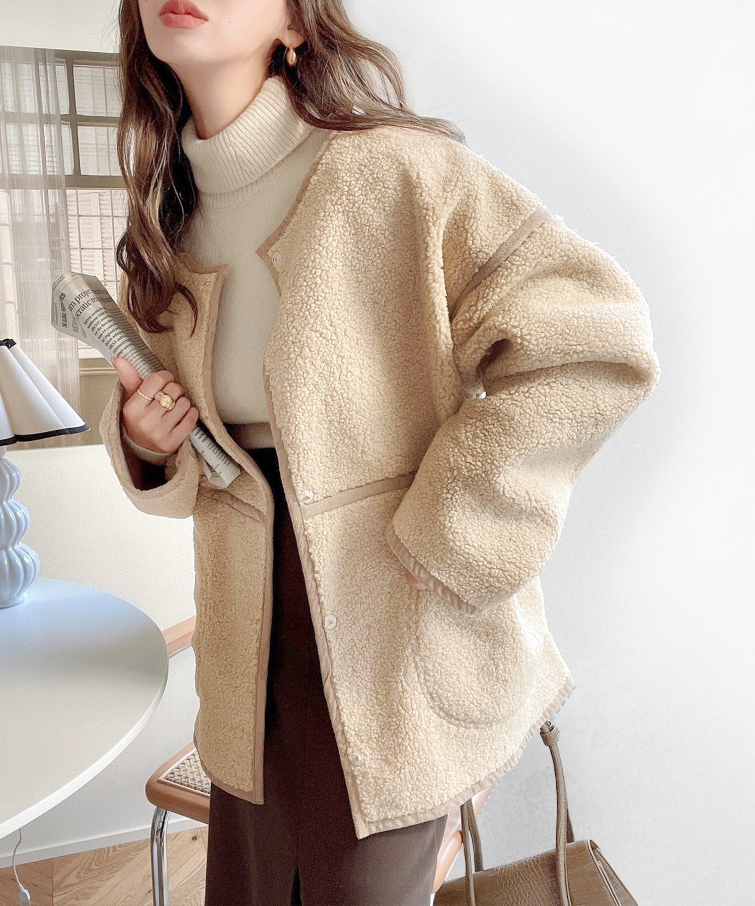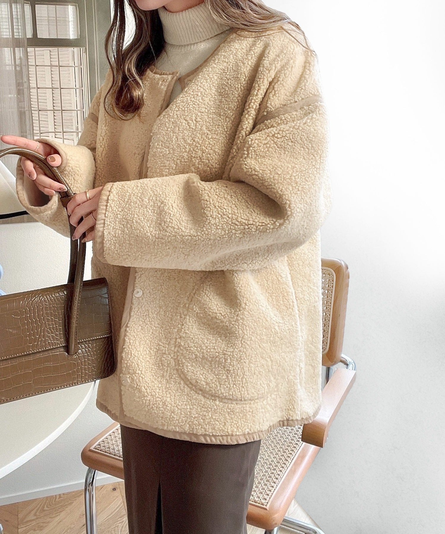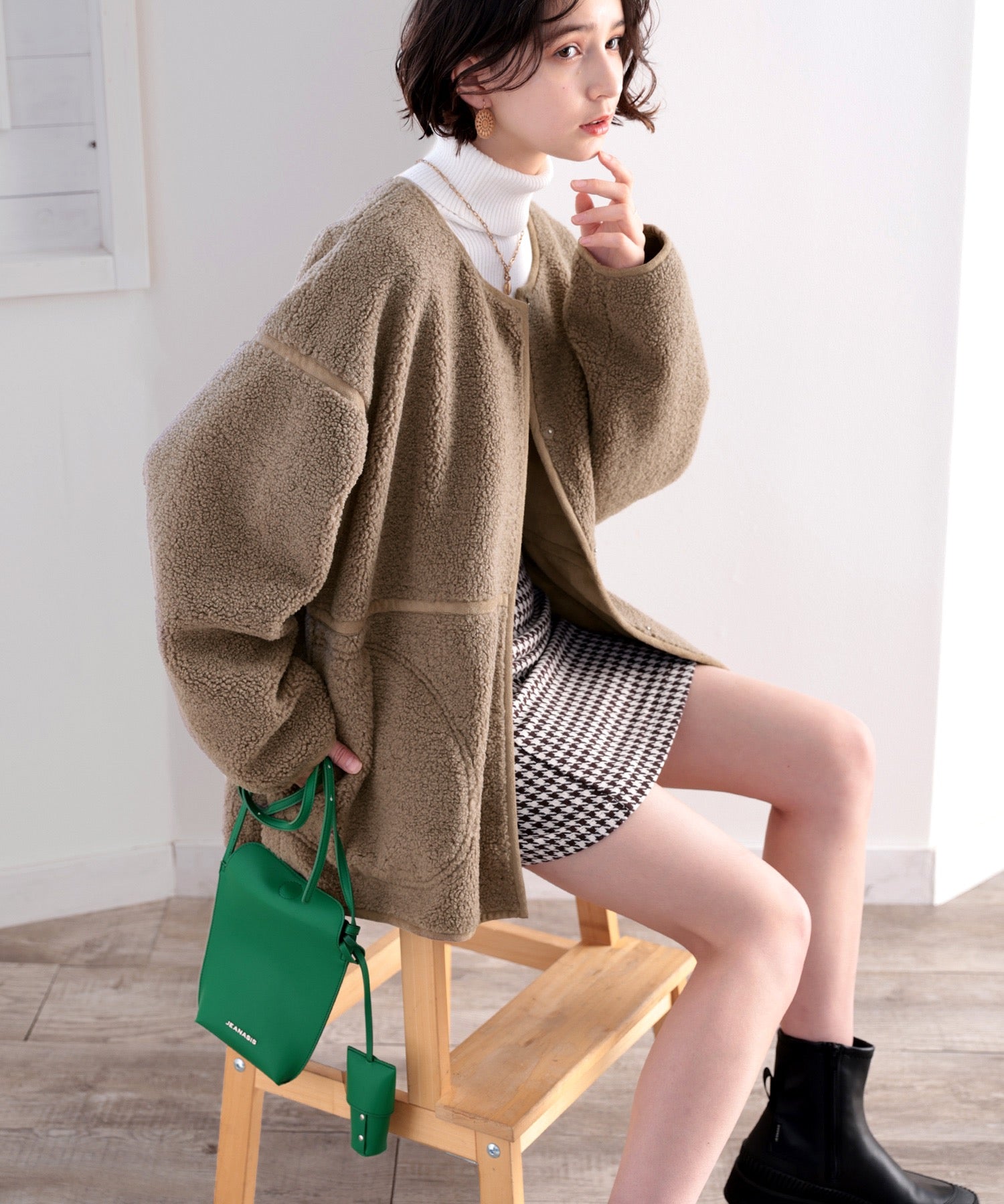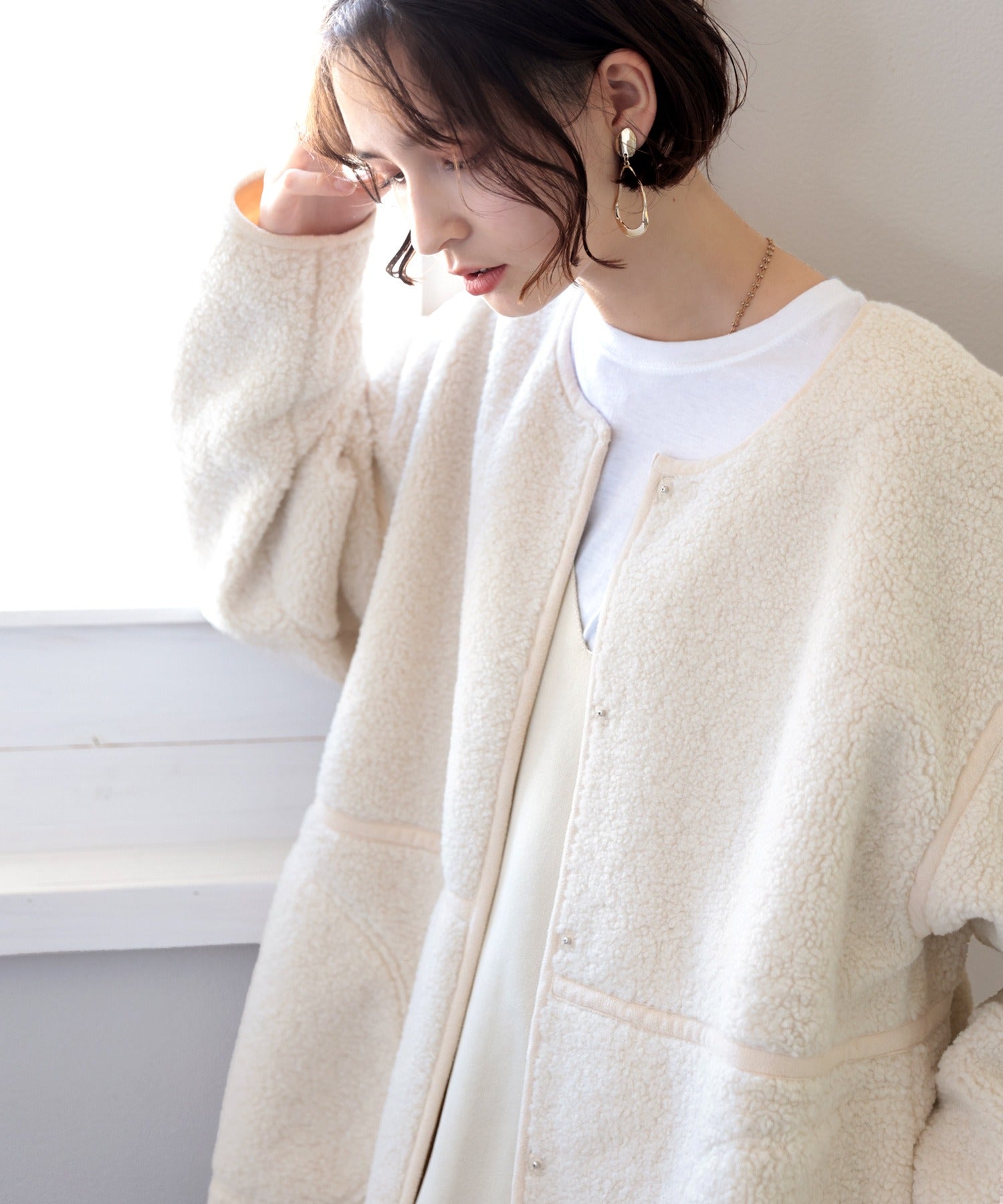 圧縮ボア×フェイクスエード。上品見えパイピングボアコート ce1060110