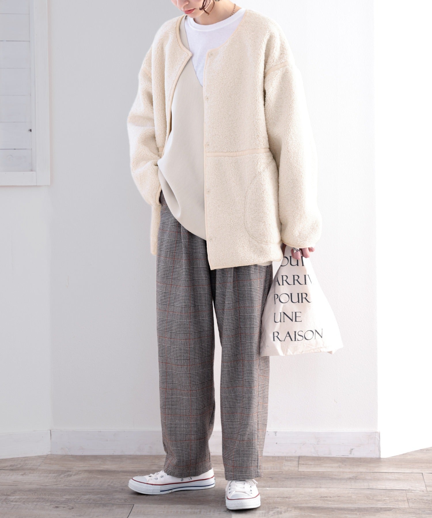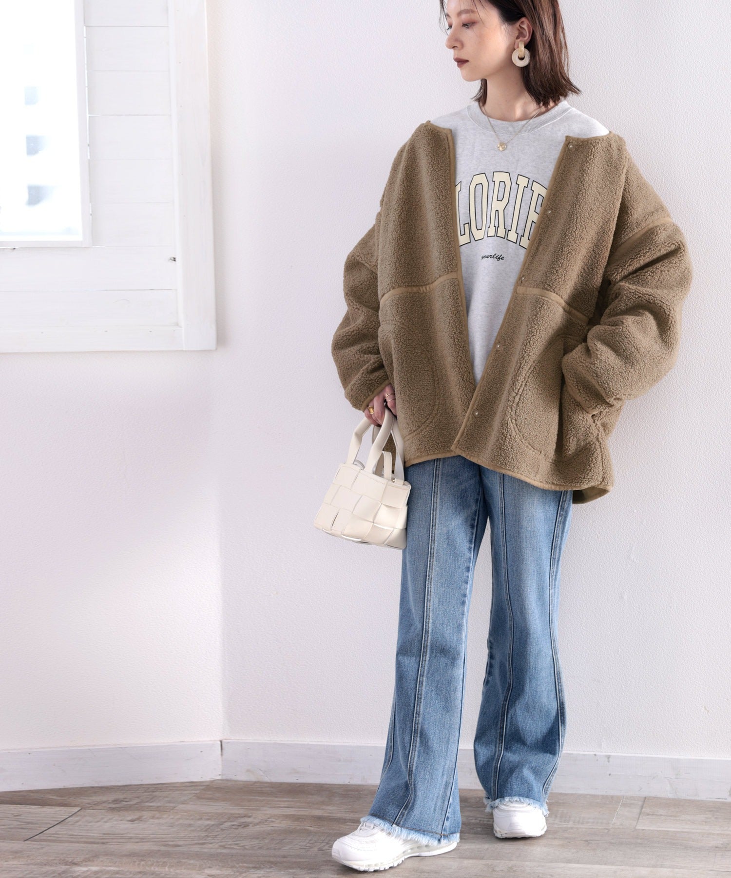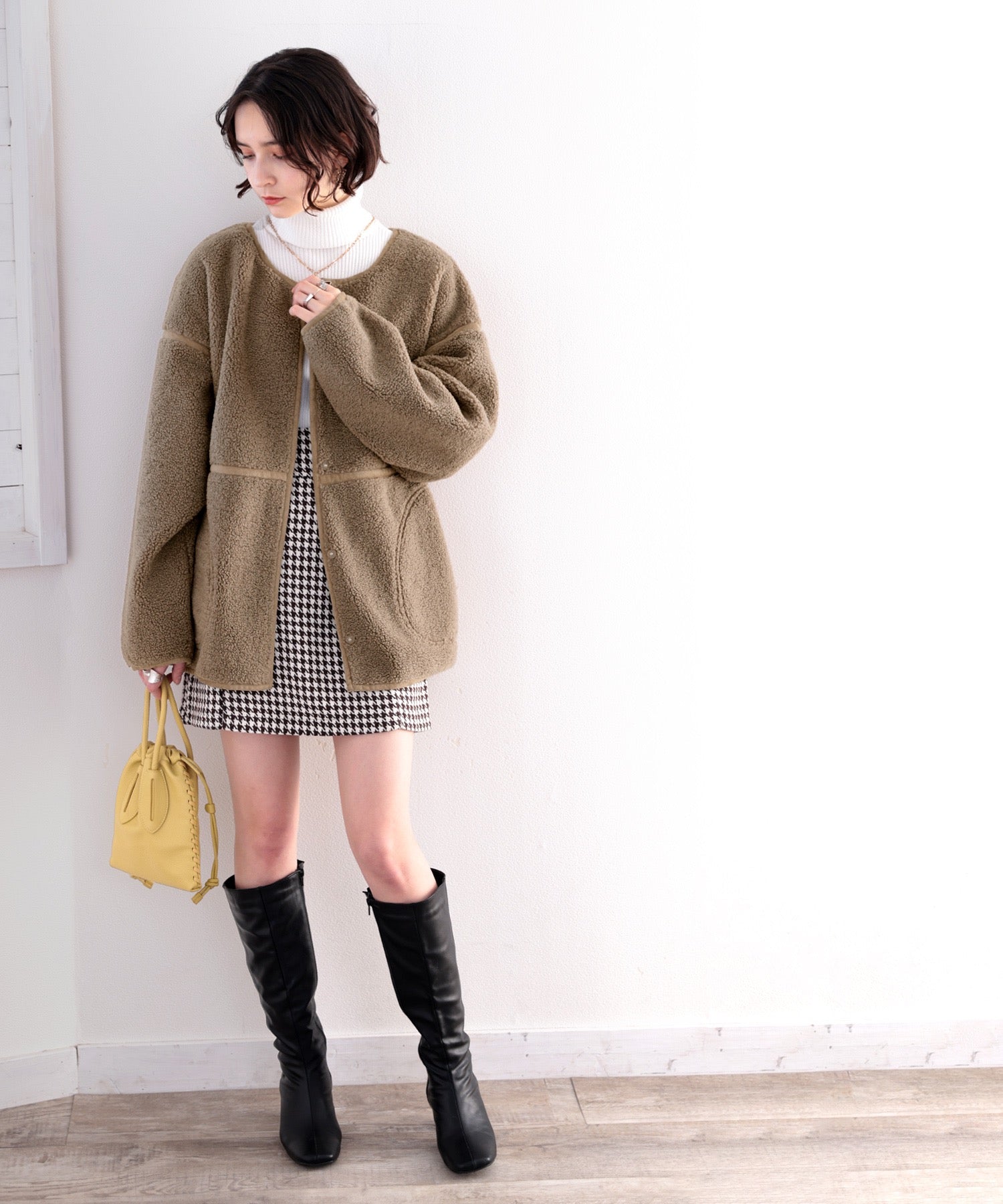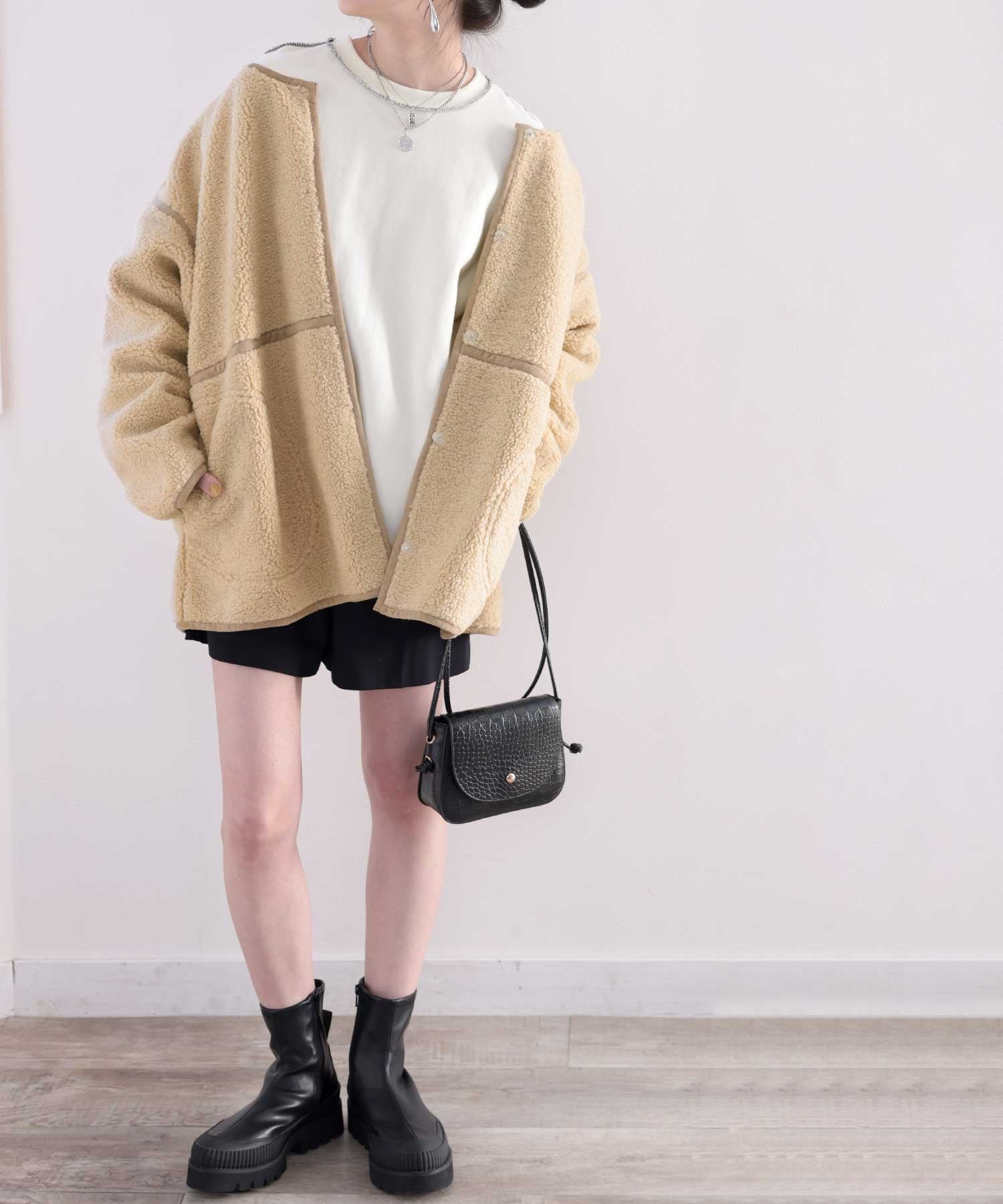 圧縮ボア×フェイクスエード。上品見えパイピングボアコート ce1060110