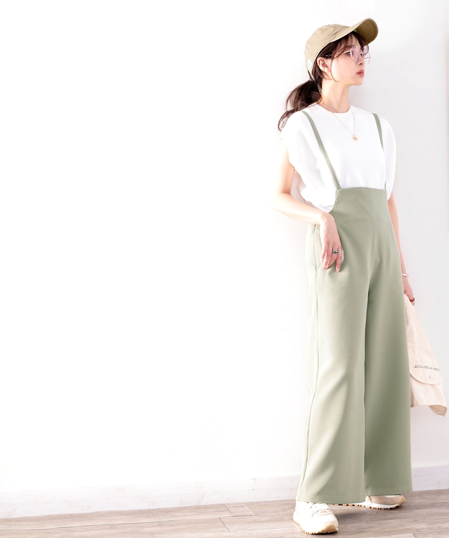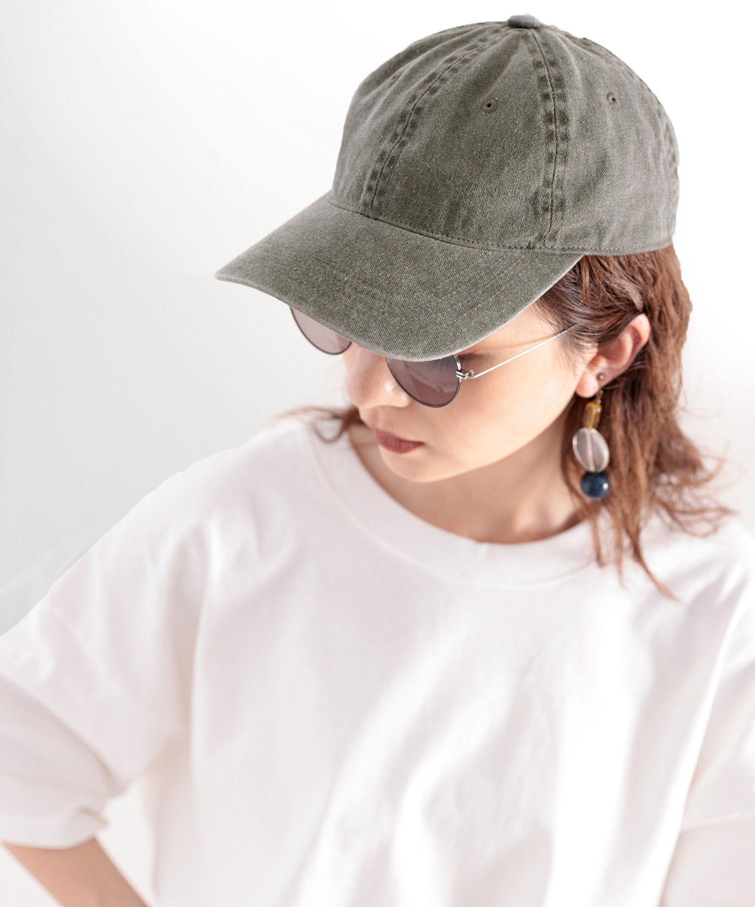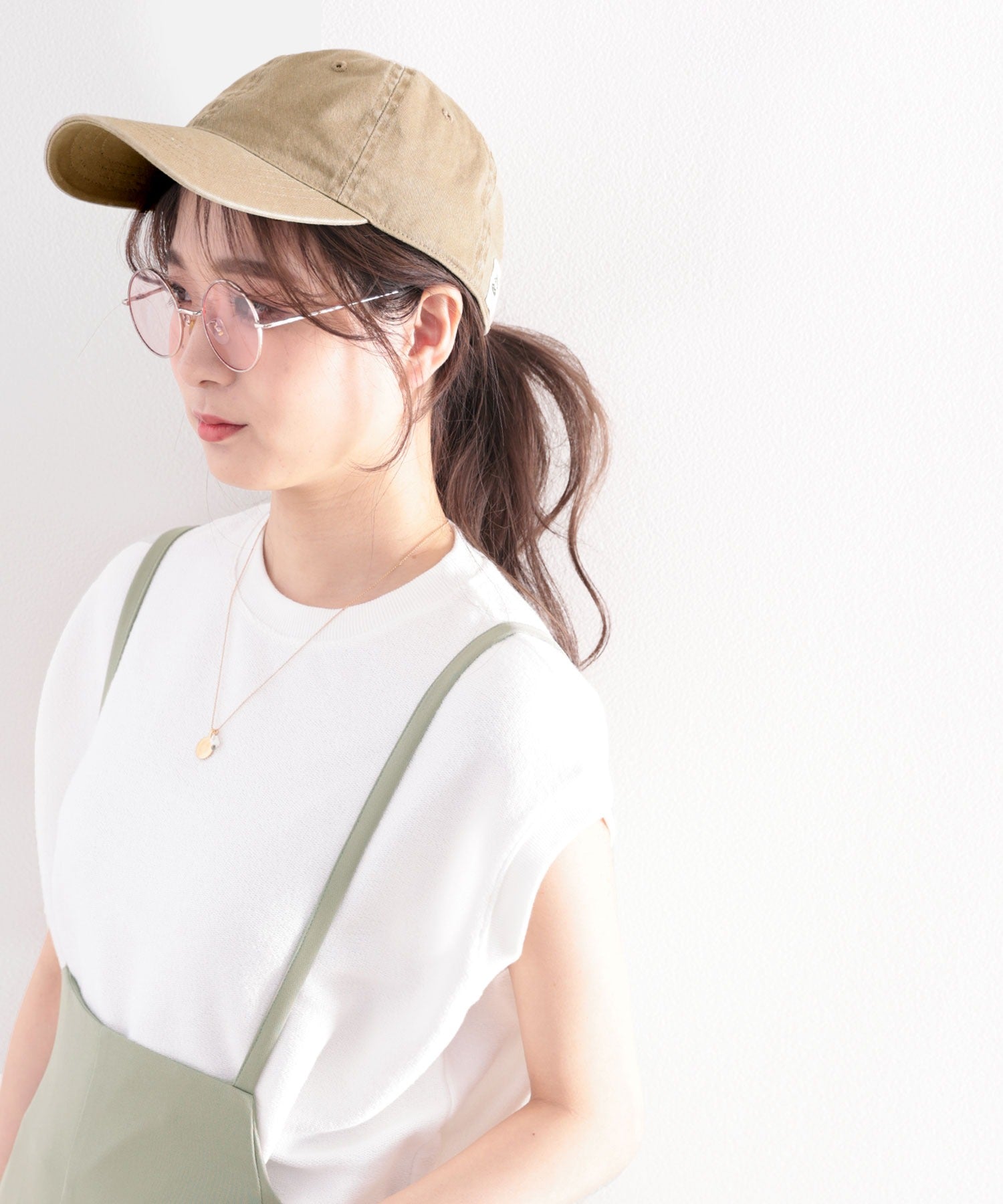 ラフなワンピースにキャップをプラスすることでこなれた垢抜けコーデに。