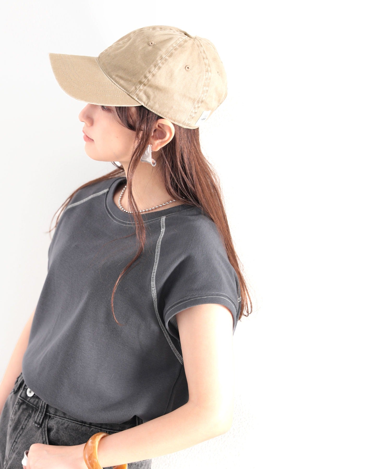 洗い加工の効いたヴィンテージ風キャップ。