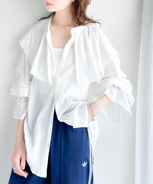 着るだけで目を惹く、2wayシアー楊柳シャツブラウスの登場。