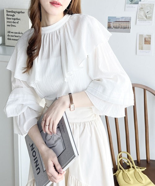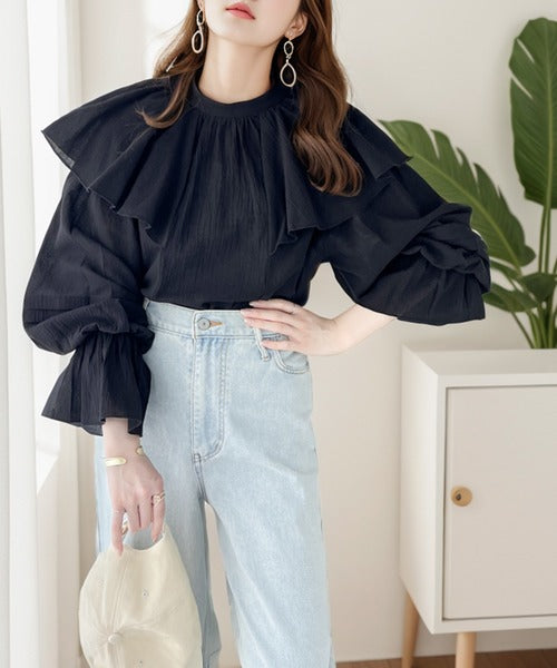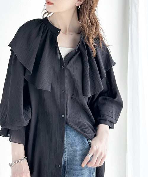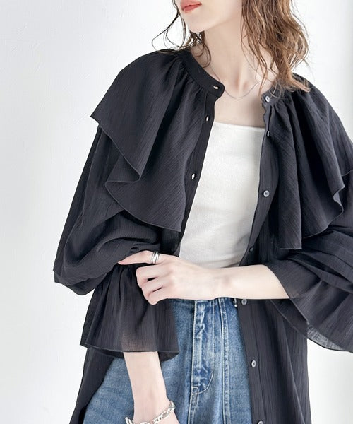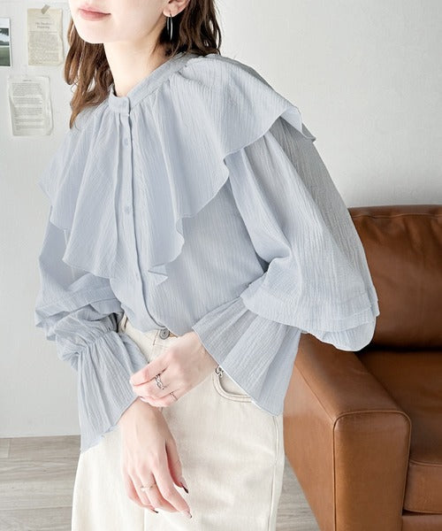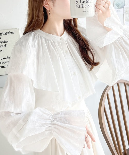 襟がフリルになったビッグカラーやキャンディースリーブが存在感抜群のアイテム。