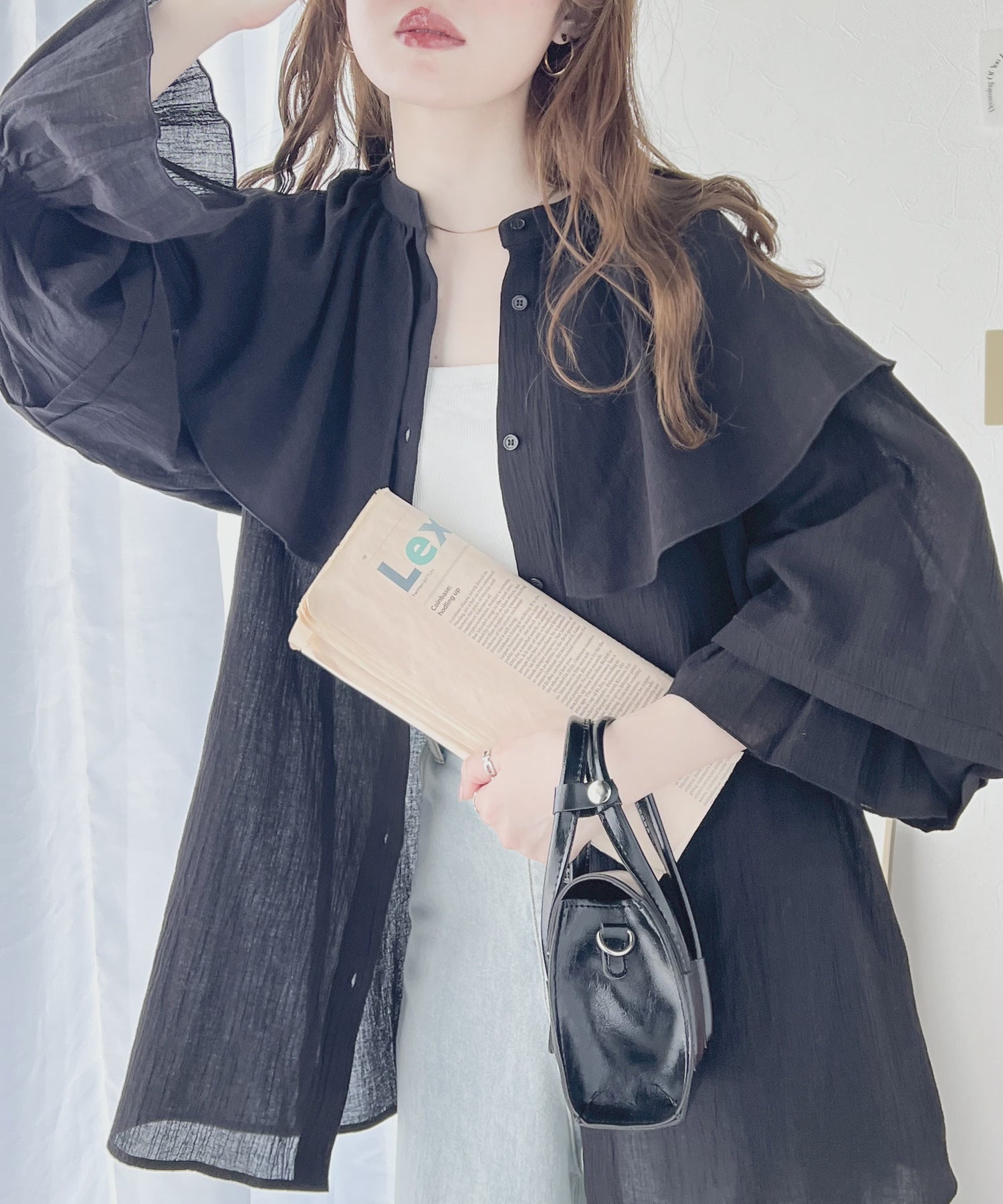 シアー素材が今っぽく、トレンドを意識した仕上がりになっています。