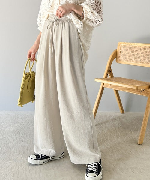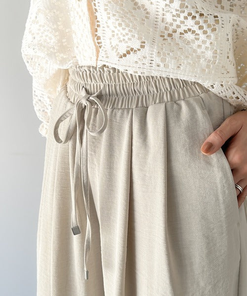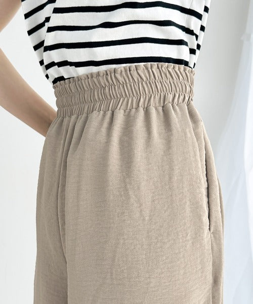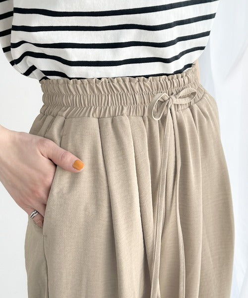 ウエストはギャザーと2タックを組み合わせたデザインなので、自然な陰影がうまれこなれ感のあるスタイルが完成。