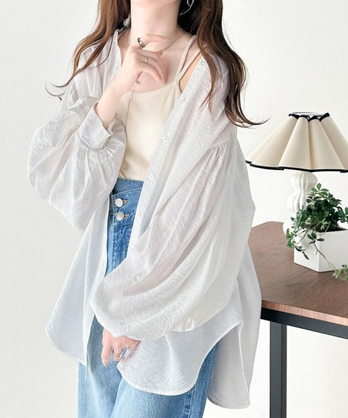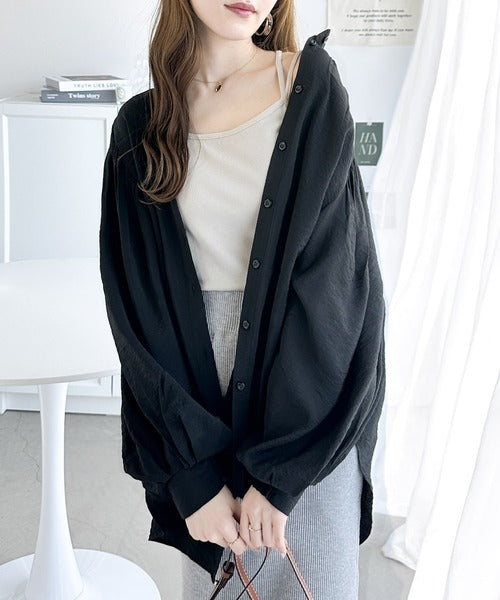 シャツ側を前にしてシアー感のある羽織りとしても着用でき、オールシーズン活用できるのも◎