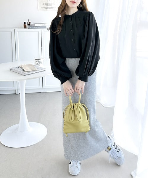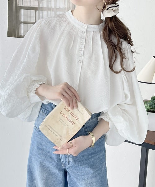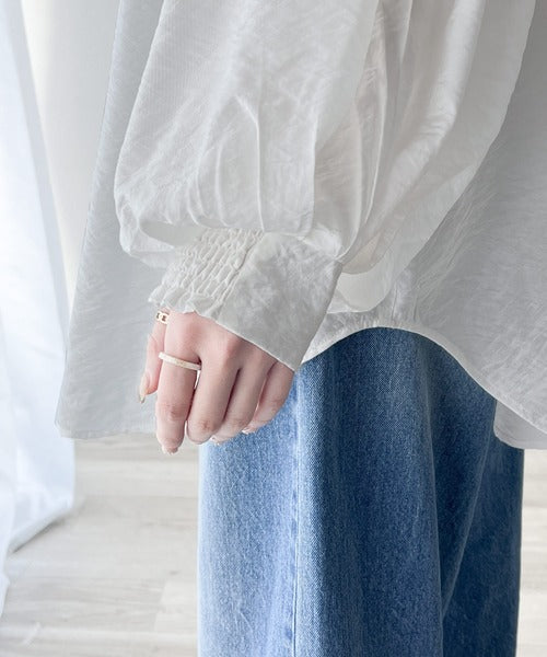 ドロップショルダーに袖ギャザーを入れたバルーンスリーブでこなれた印象に!