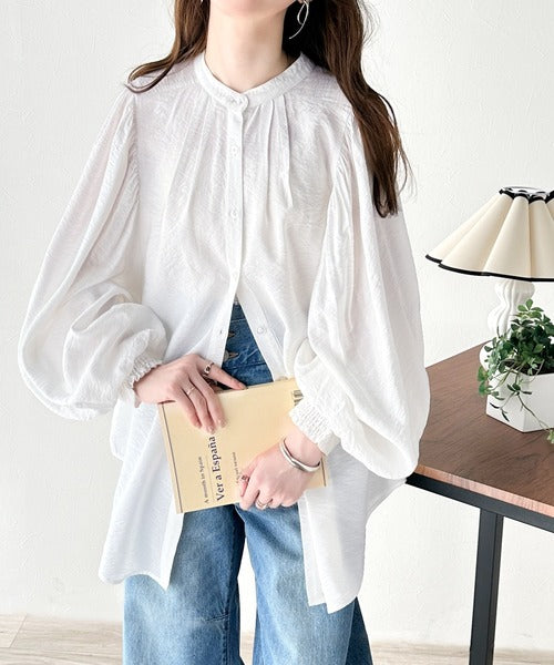 大人映えするしなやかニュアンス。前後2wayボリューム袖シャツブラウス ce1070086