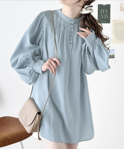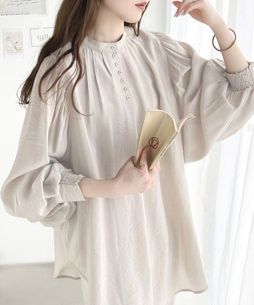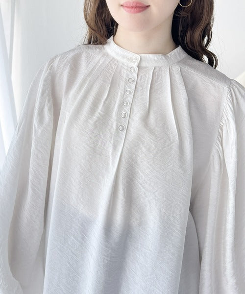 バンドカラーシャツとプルオーバーブラウスの2wayに加え、