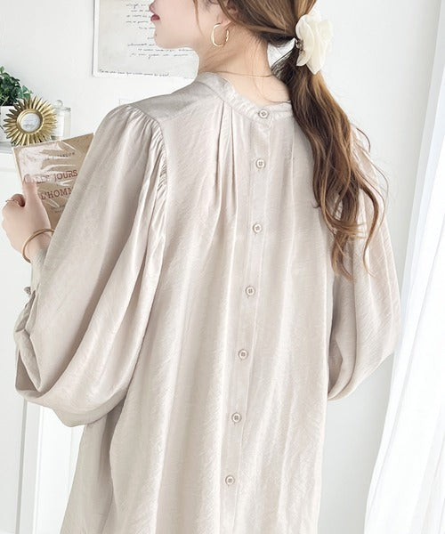 前後どちらのデザインで着てもたっぷりとしたボリュームスリーブがアクセントになる大人可愛いブラウスです。