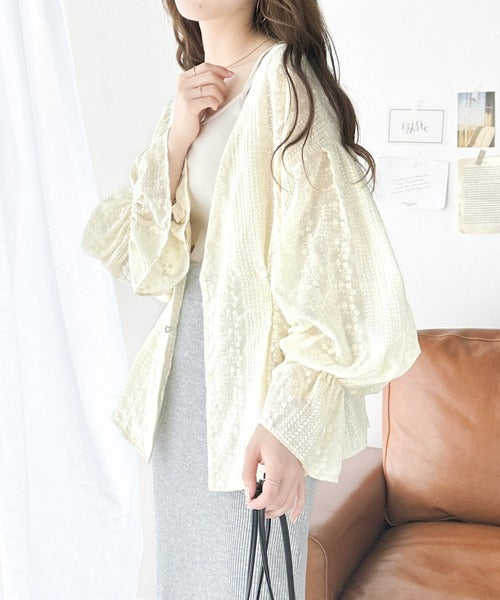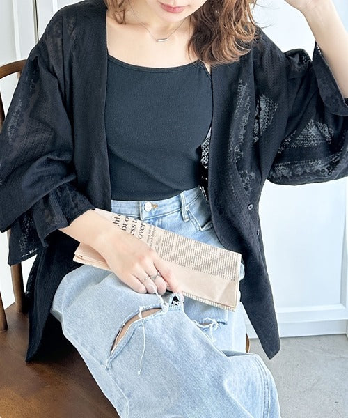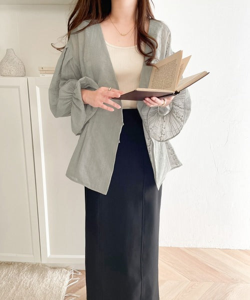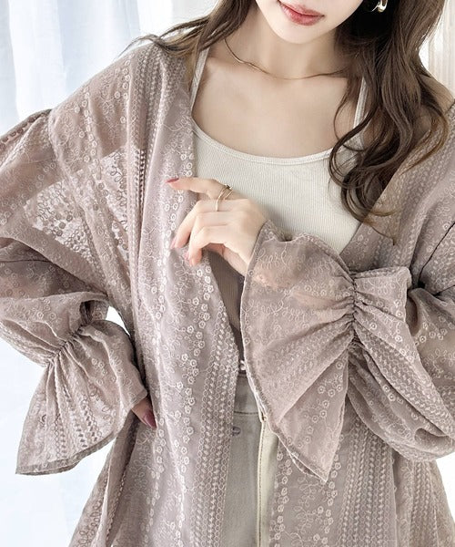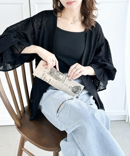 シアーでエレガントな羽織としても着用できるのでロングシーズン着回しが効くのも嬉しいアイテム。