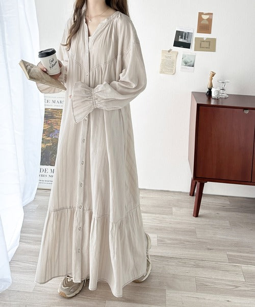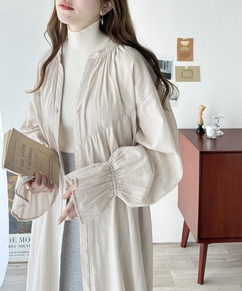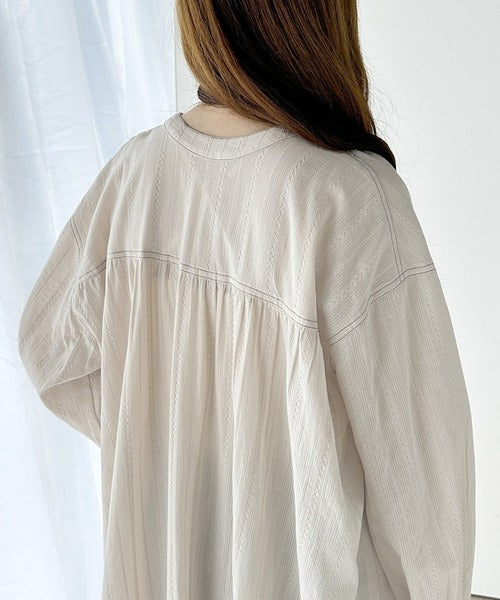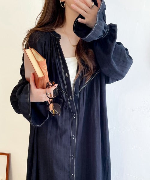 表面感のあるカラミストライプドビー生地を贅沢に使用したワンピース。