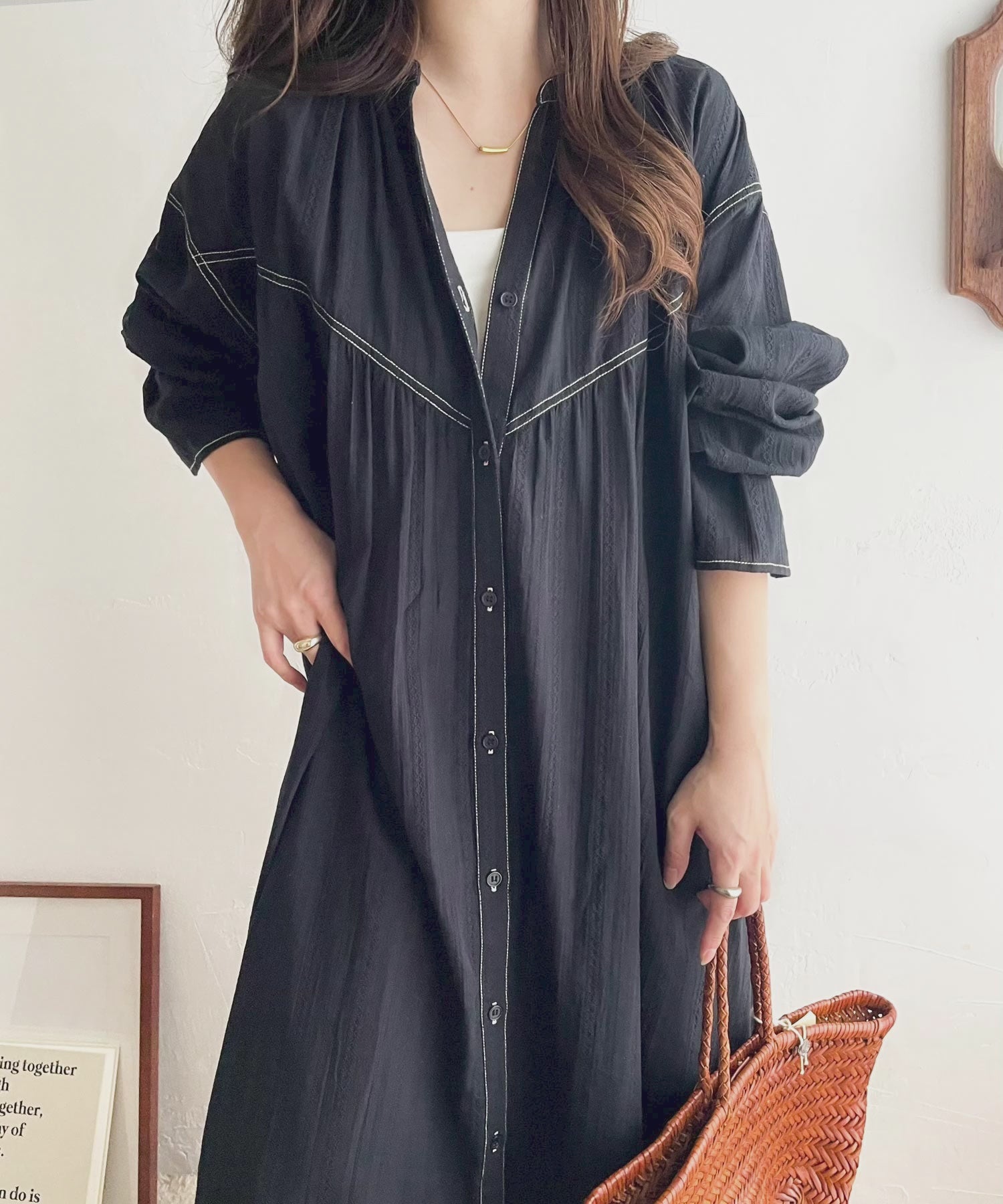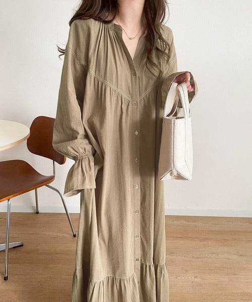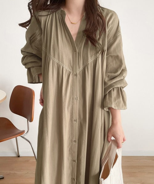 ナチュラルでおしゃれな雰囲気のシャツワンピース。