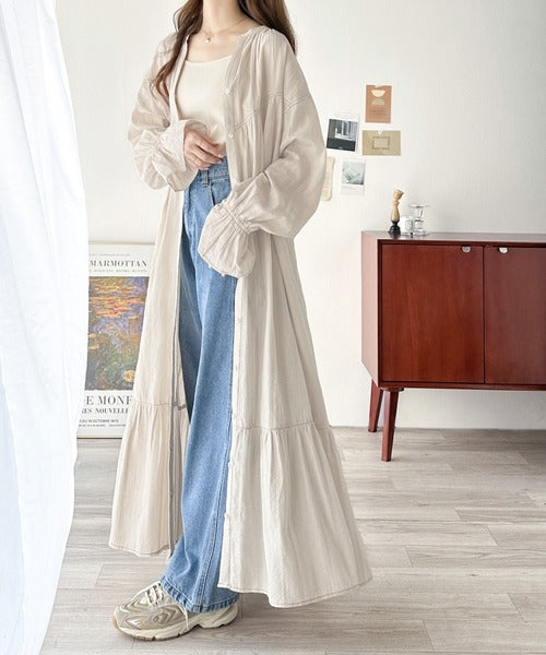 前後2wayにしたり、前のボタンをすべて開けて羽織としても着用できるのでコーディネートの幅が広がります。