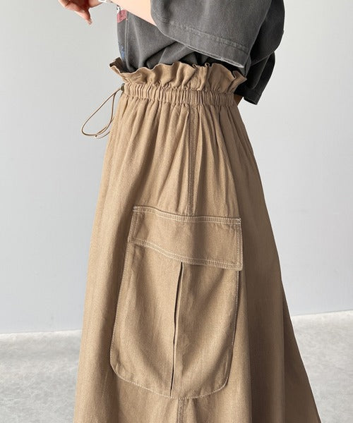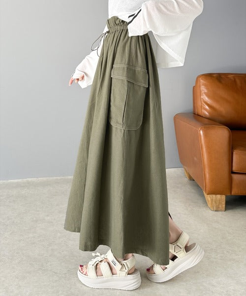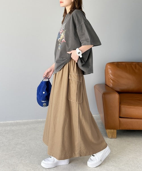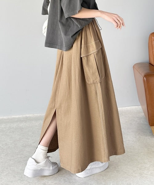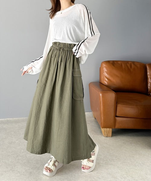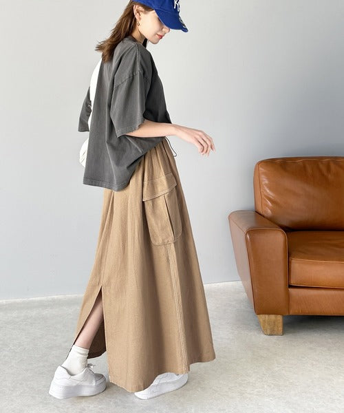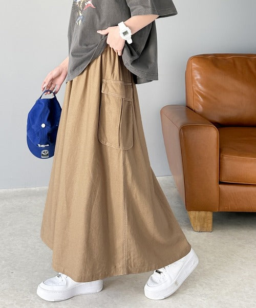 変形カーゴポケットがアクセントになったロング丈スカート。