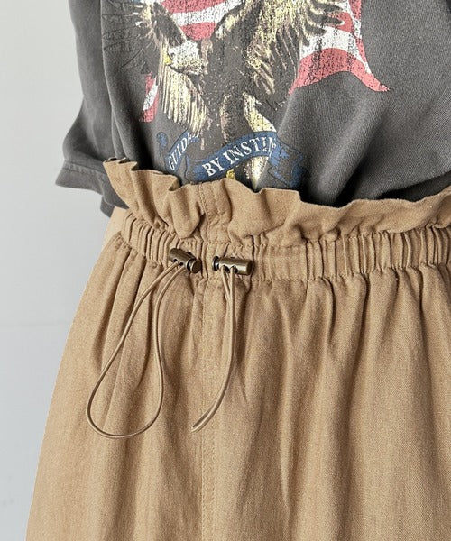 ウエストは総ゴム仕様なので楽ちんに着こなせるのも嬉しいポイント。