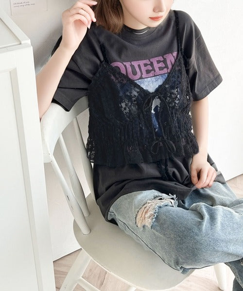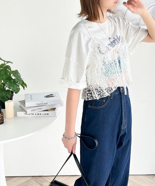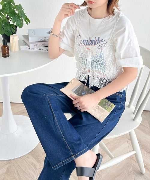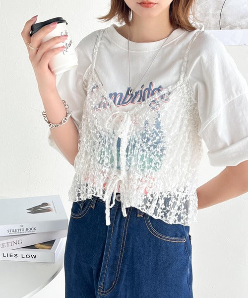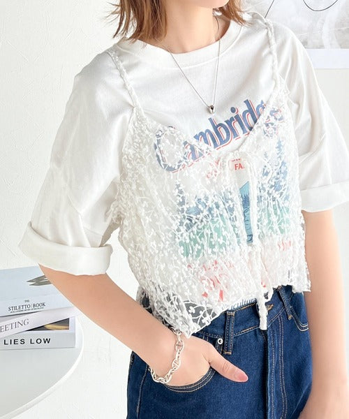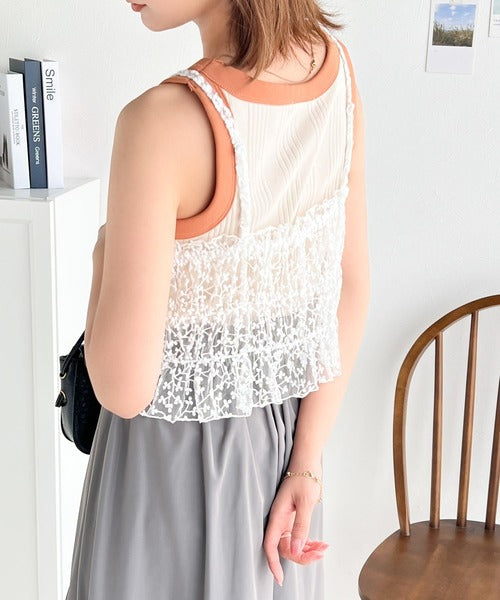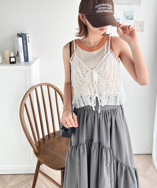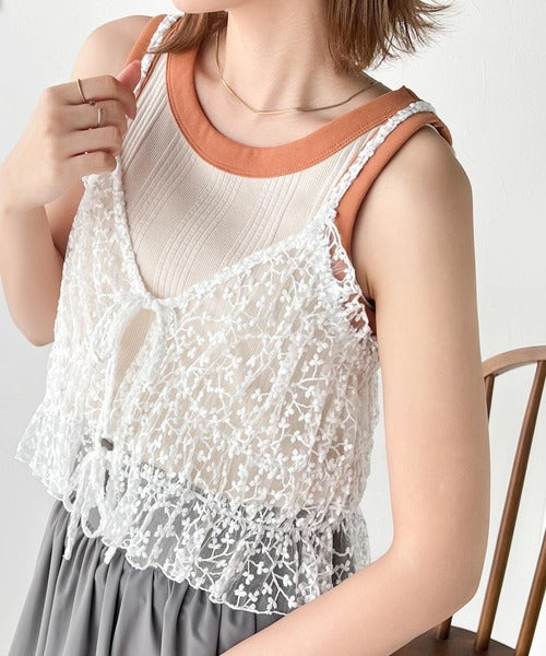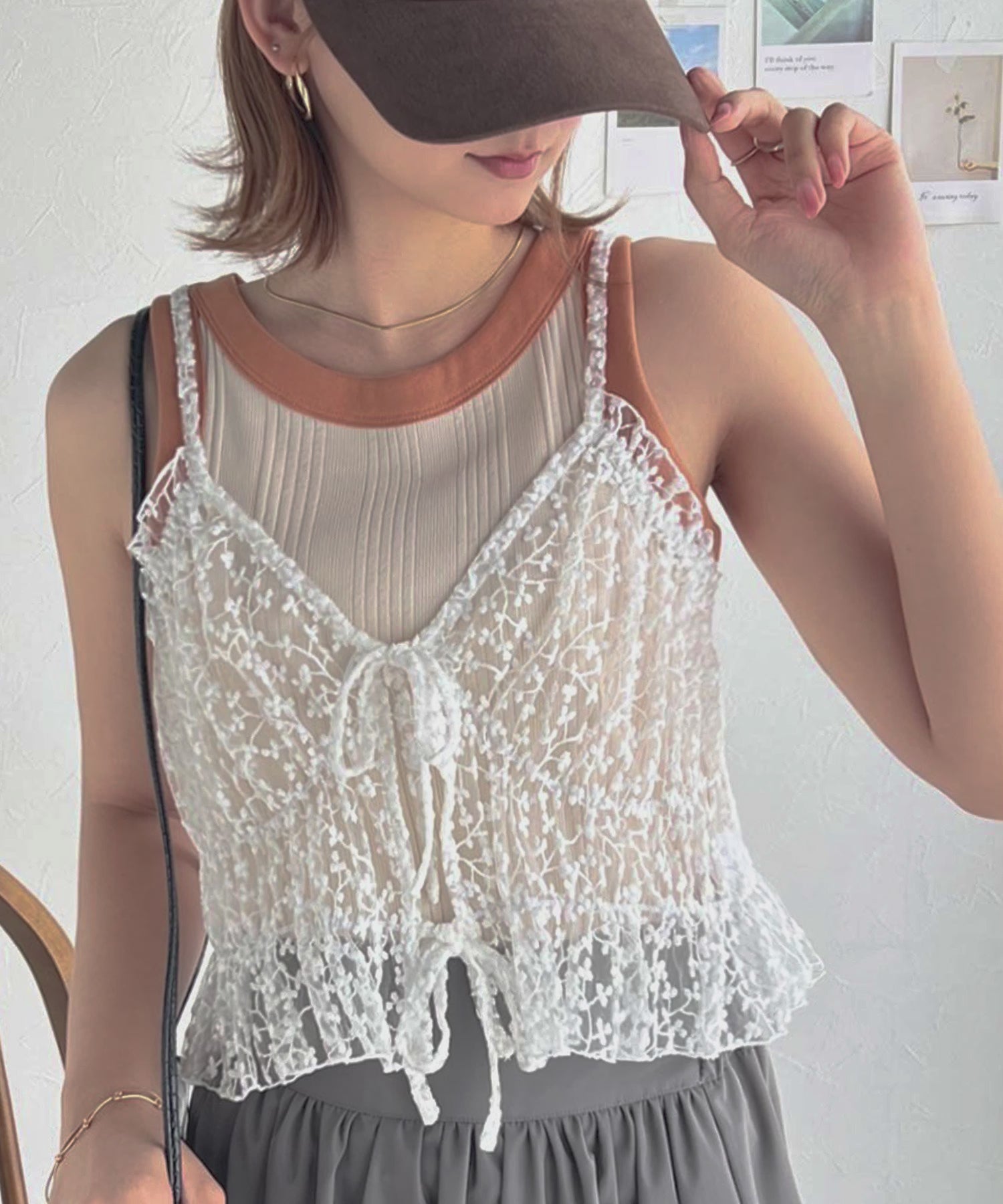 コーディネートに鮮度を加える。フラワー刺繍チュールリボンキャミビスチェ ce1070113