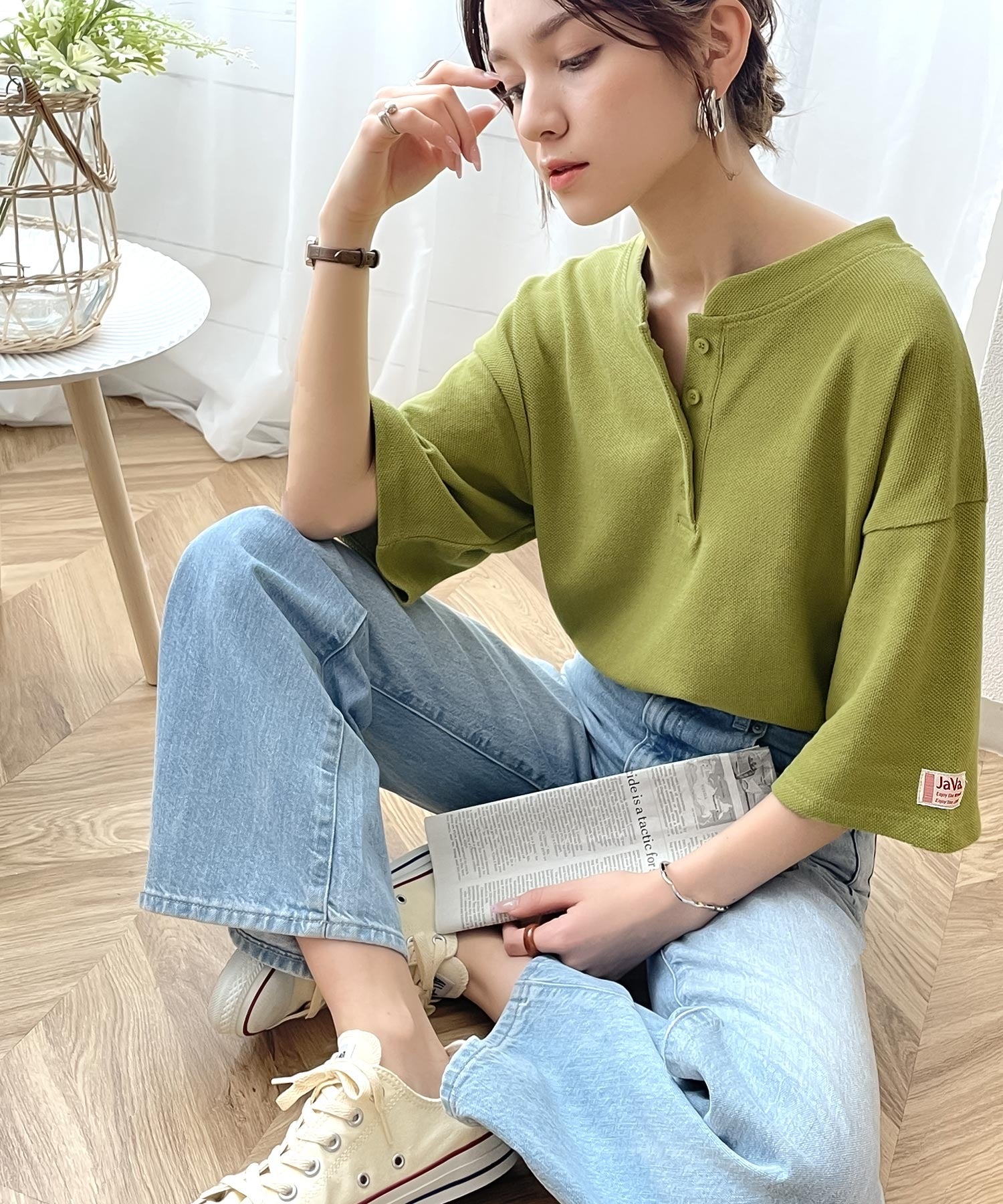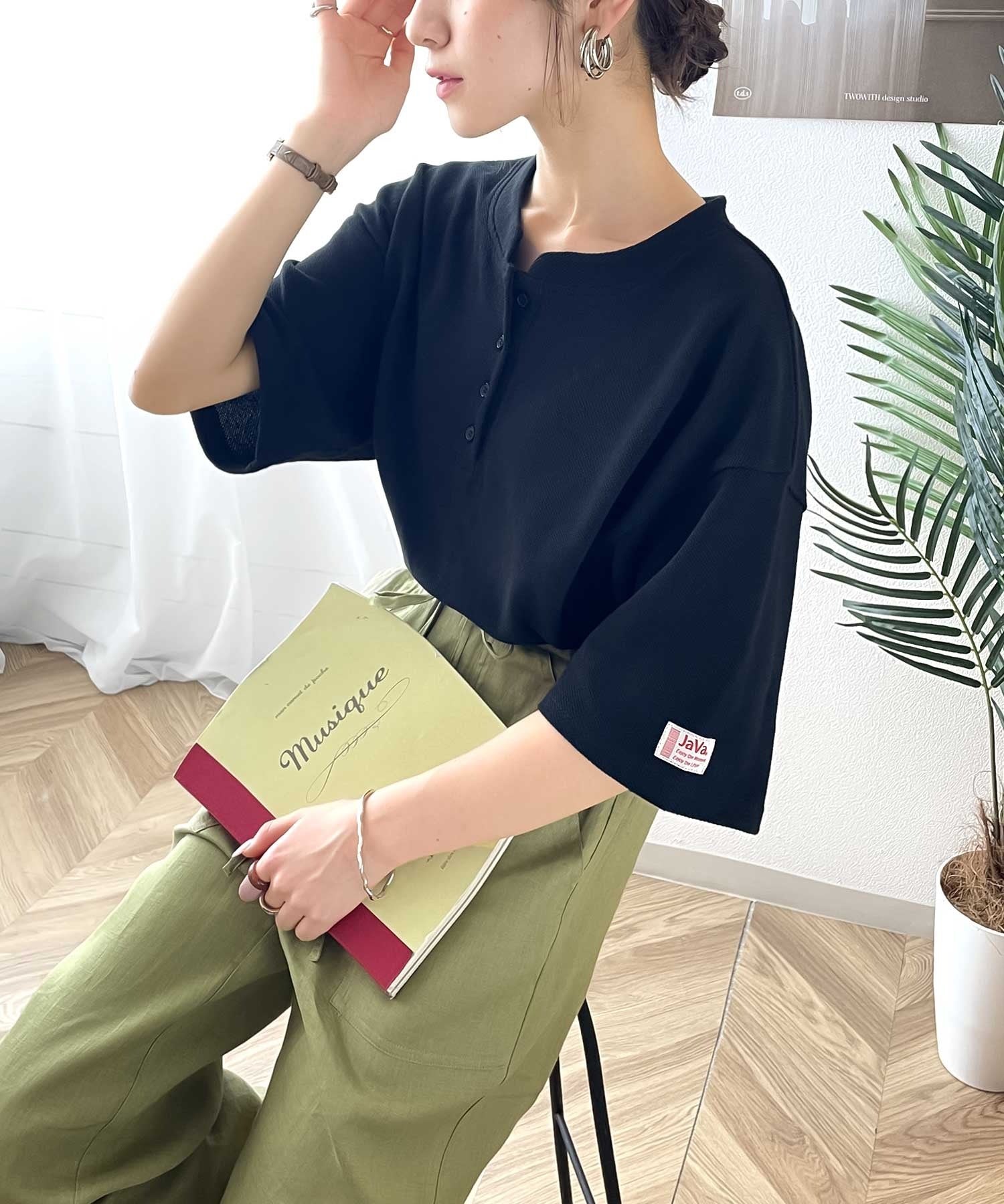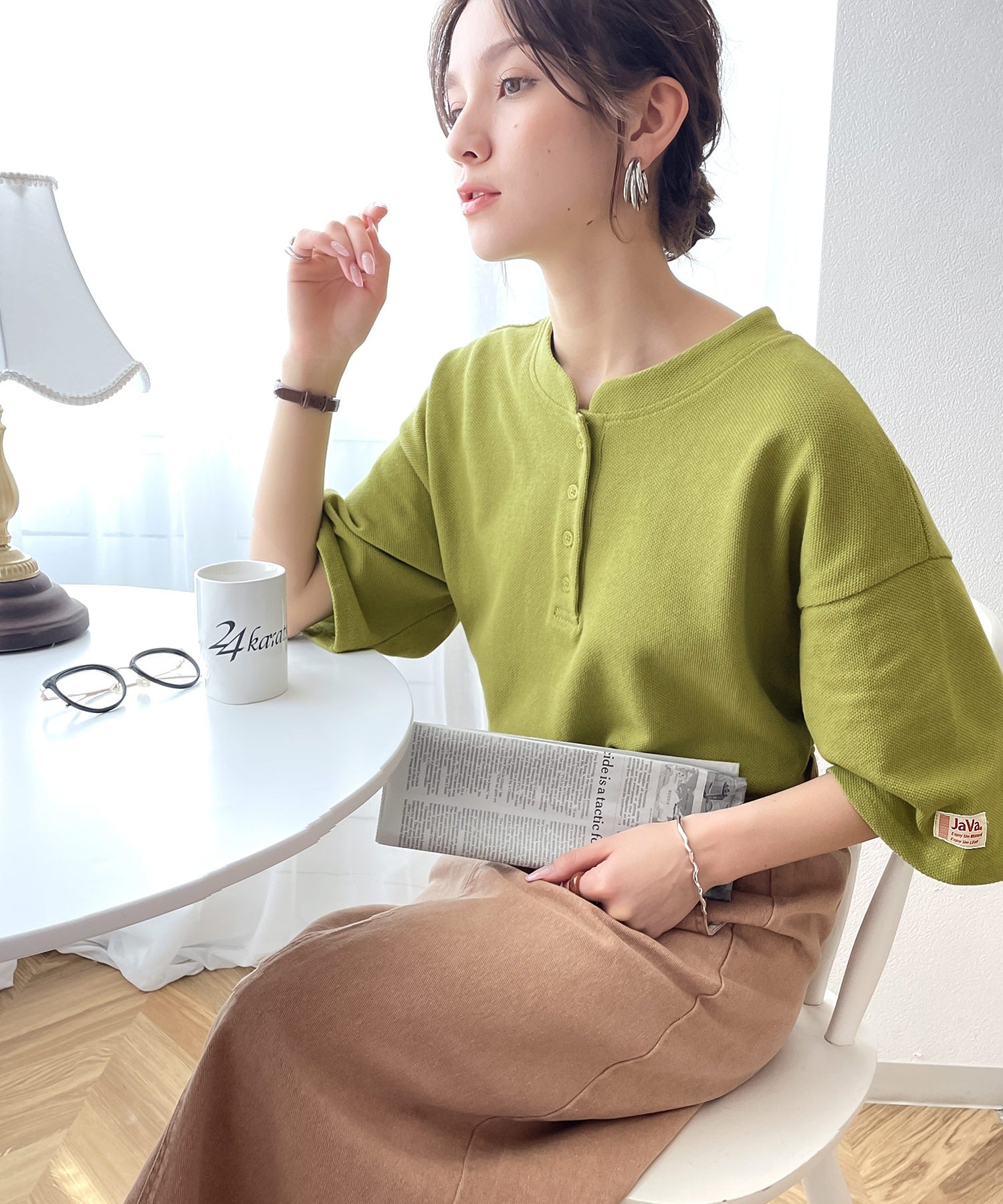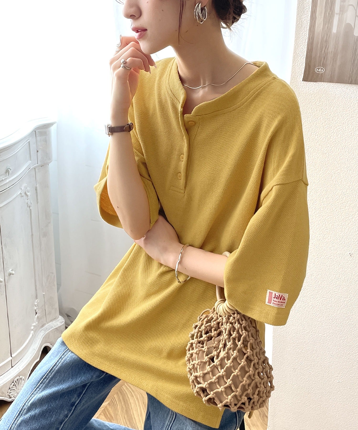《JaVaジャバ コラボ》レトロ魅せ。綿100%ヘビーウェイト鹿の子スタンドネックTee ce1090001