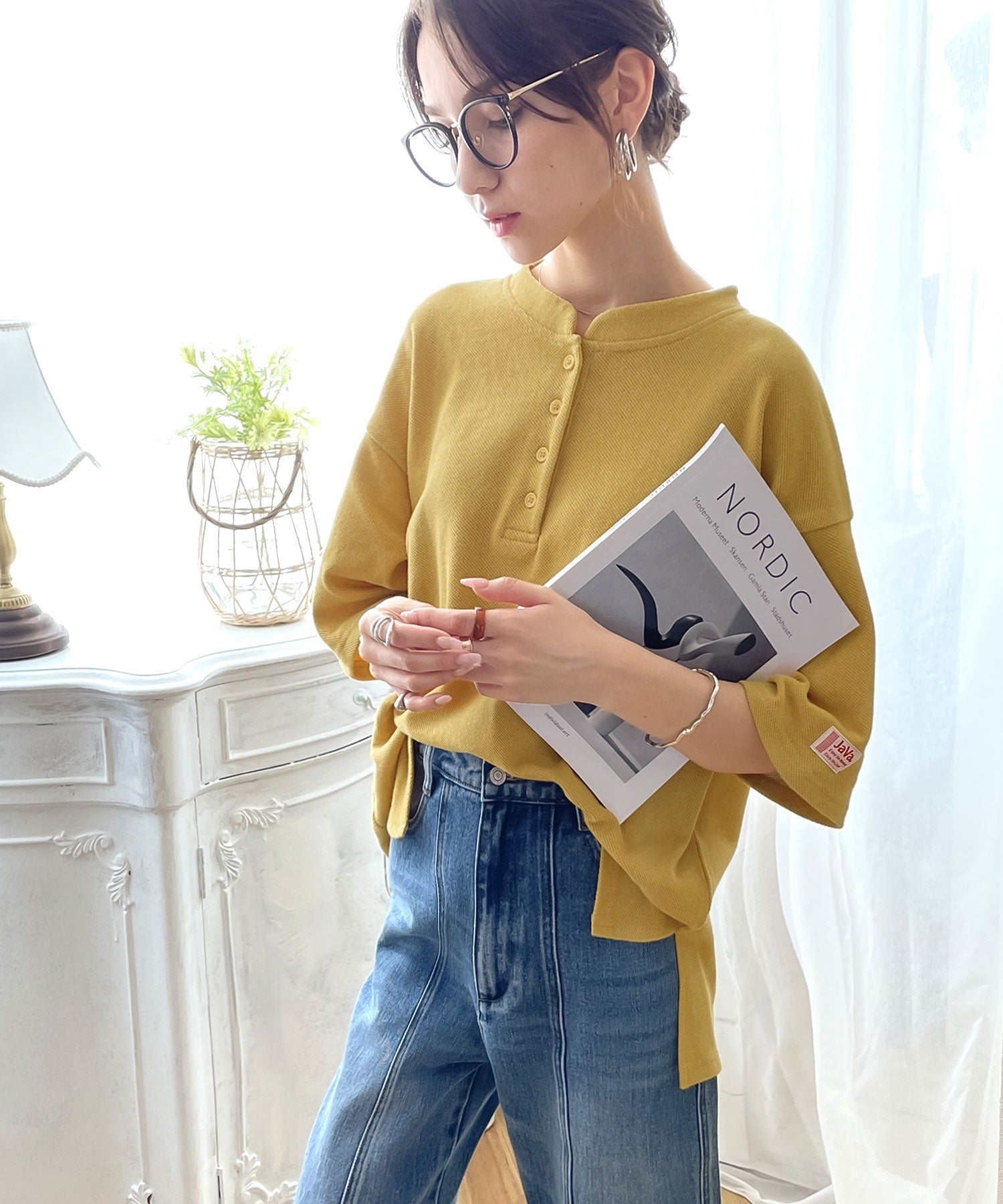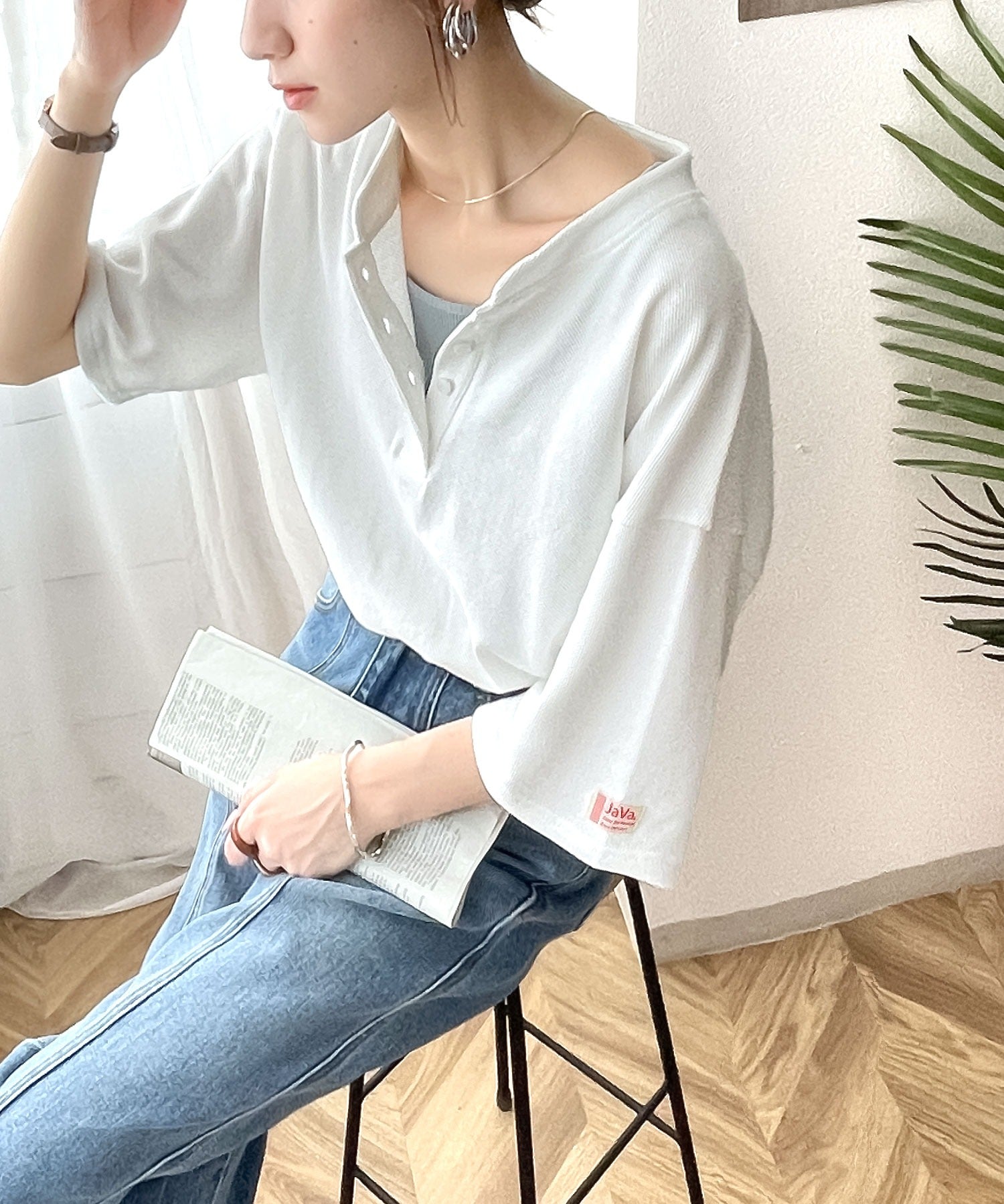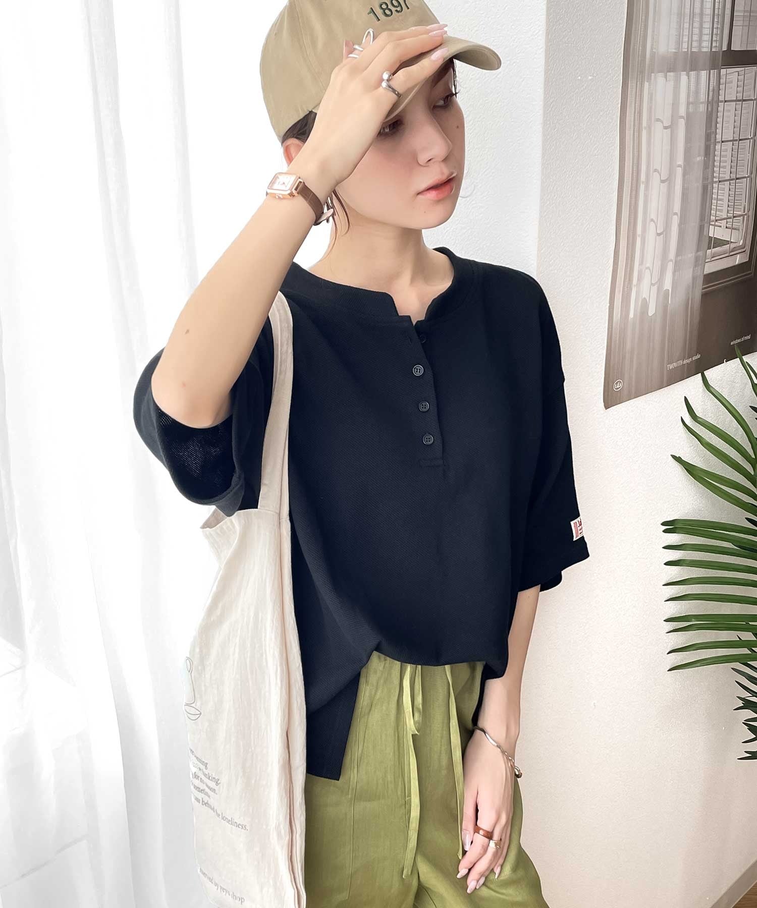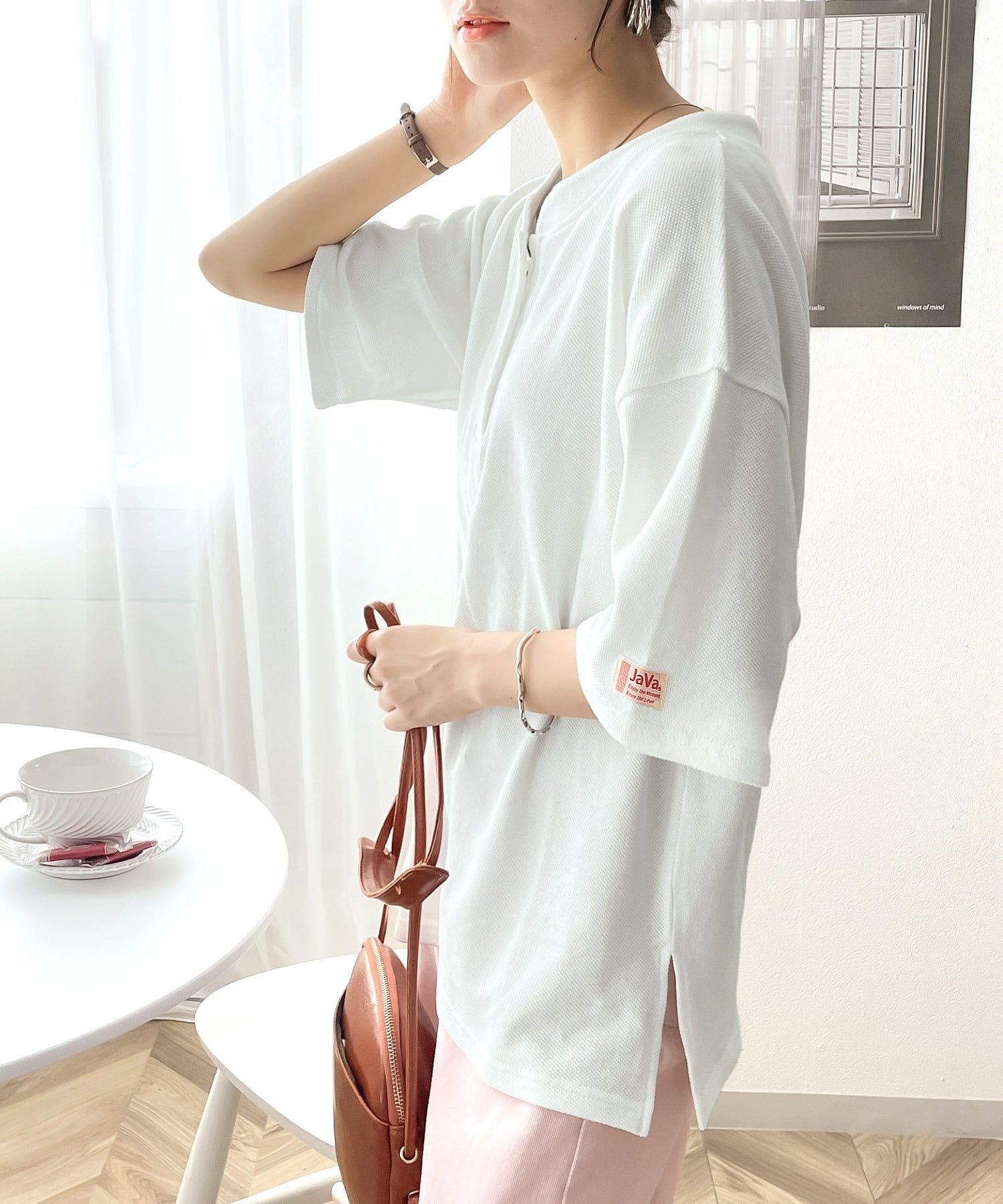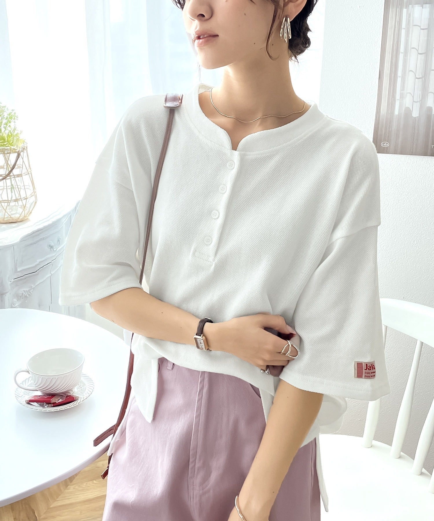 《JaVaジャバ コラボ》レトロ魅せ。綿100%ヘビーウェイト鹿の子スタンドネックTee ce1090001