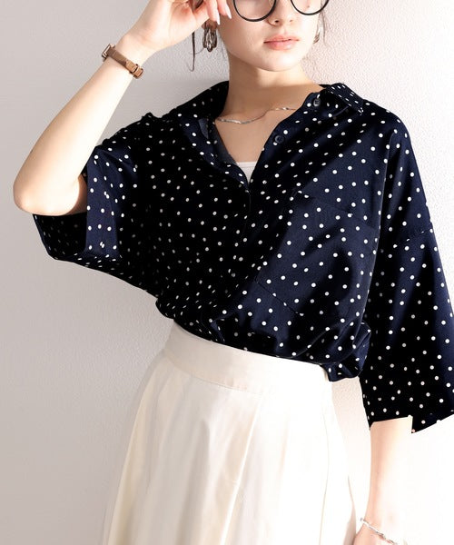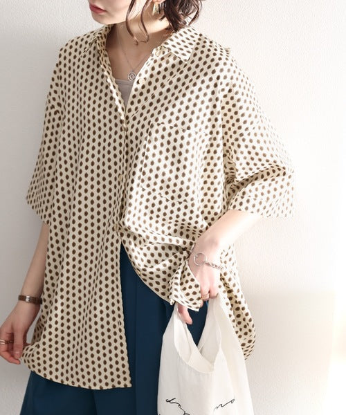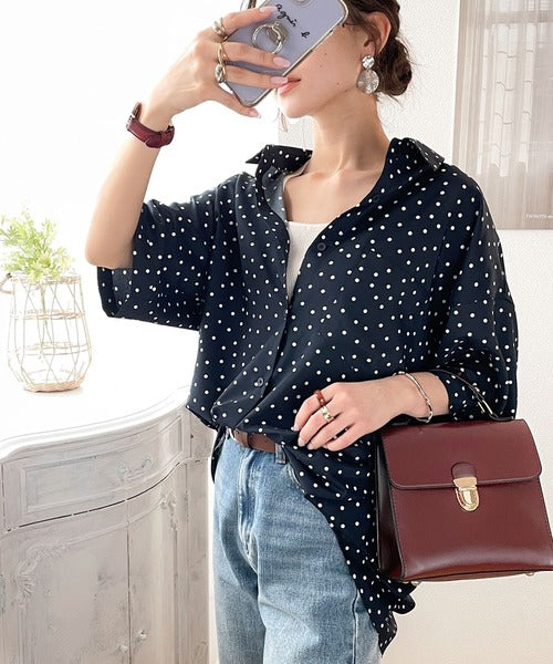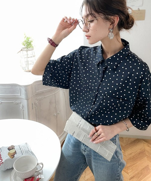 レトロ気分を盛り上げてくれるドット柄シャツ。