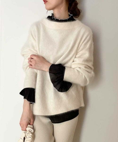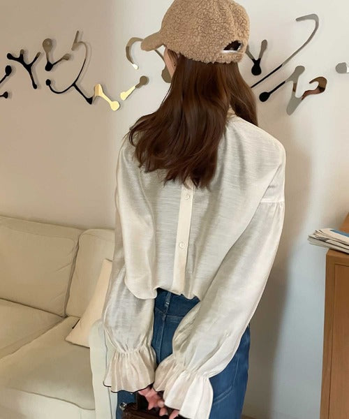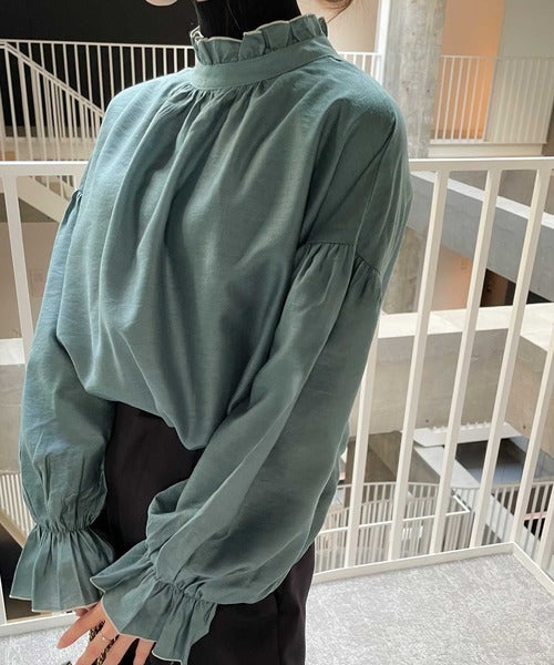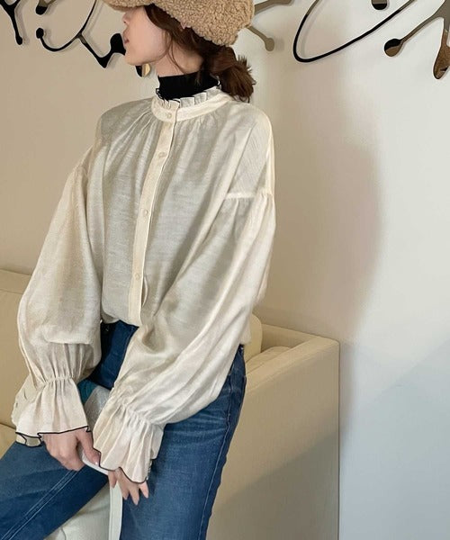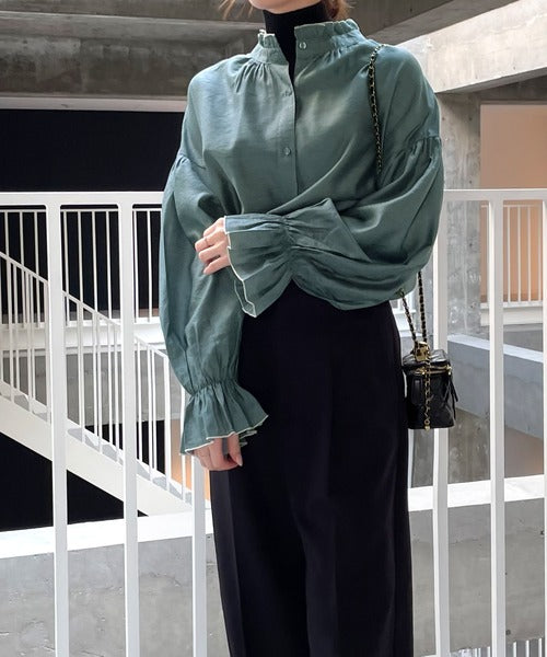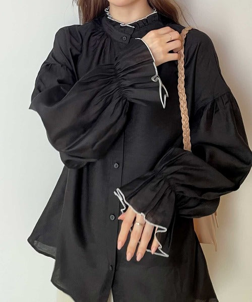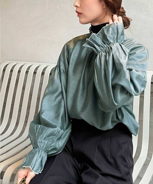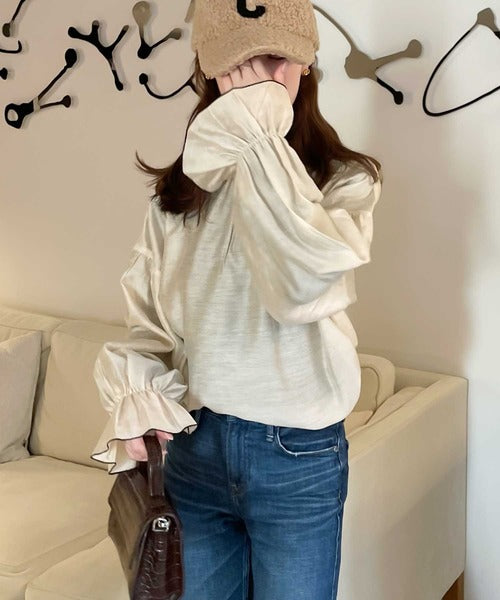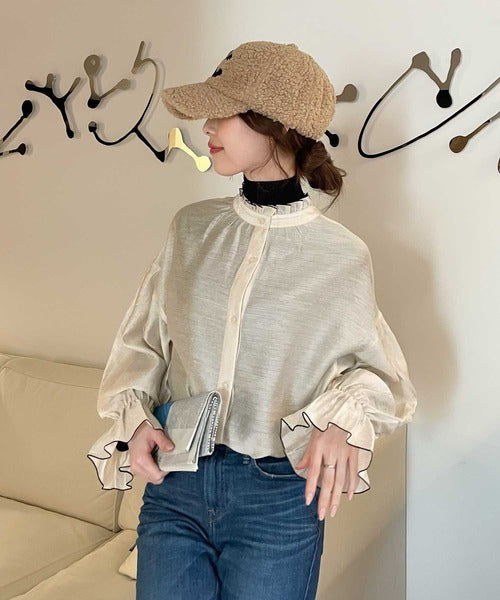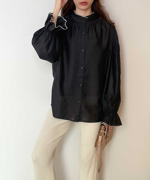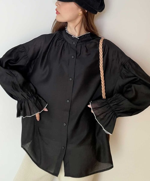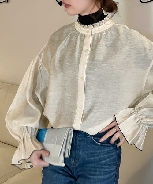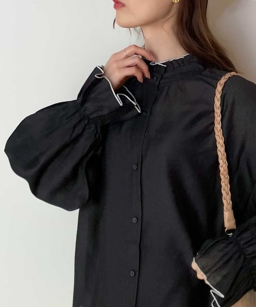 しっとり女性らしく。2wayフリルカラー配色メローキャンディスリーブブラウス ce1110005